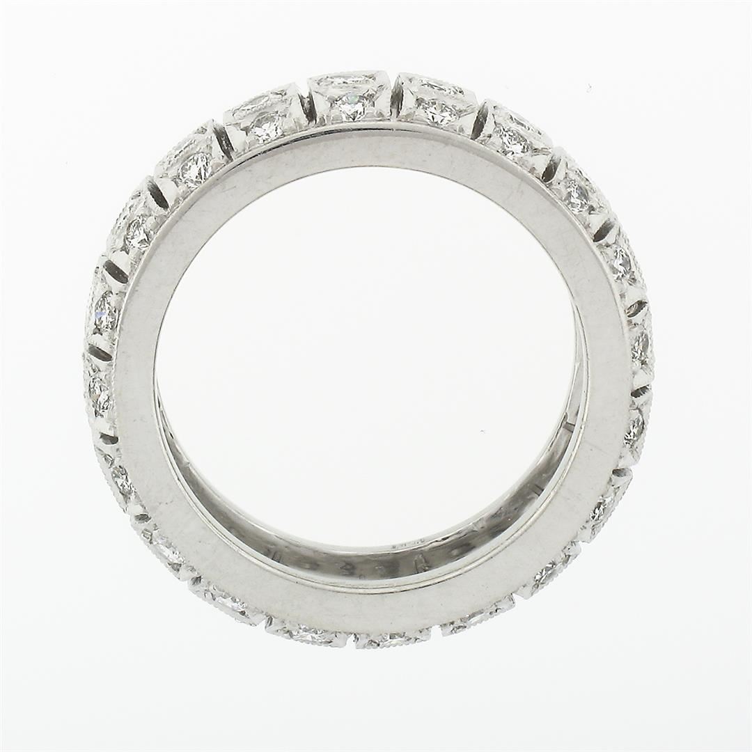A vintage solid platinum wide eternity band ring, featuring 60 round brilliant cut natural diamonds (G/H - VS1/VS2 ; 1.30ctw). The ring is size 6, weighs a total of 8.86 grams, and measures 6.25mm wide.