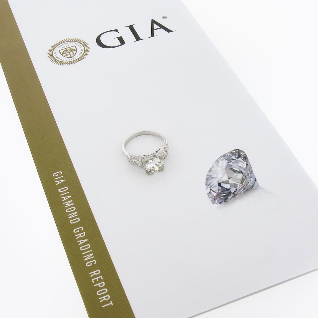 A vintage solid platinum ring, featuring with 1 GIA graded old European cut natural diamond (J - VS2; 1.33ct), 2 old marquise cut natural diamonds (H/I -VS2/SI1 ; 0.16ctw), and 12 old single cut natural diamonds (G/H - VS1/VS2 ; 0.18ctw). The ring is size 4.5, weighs a total of 4.0 grams, and measures 7.60mm wide. Comes with all original relevant certifications.