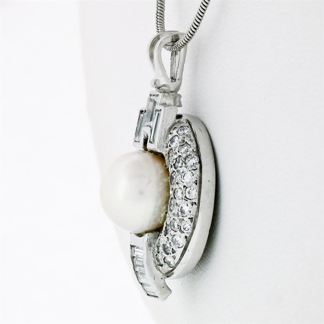 Vintage Platinum 1.70 ctw Old Transitional Baguette Diamond Pearl Pendant Neckla