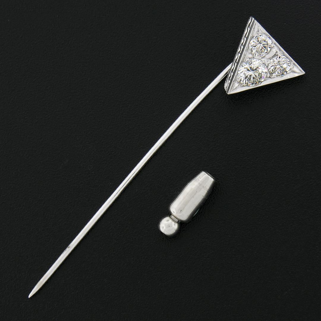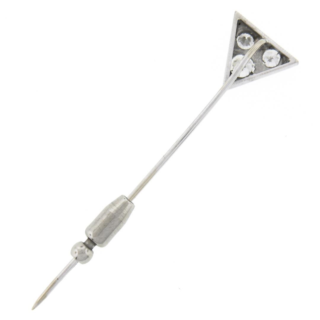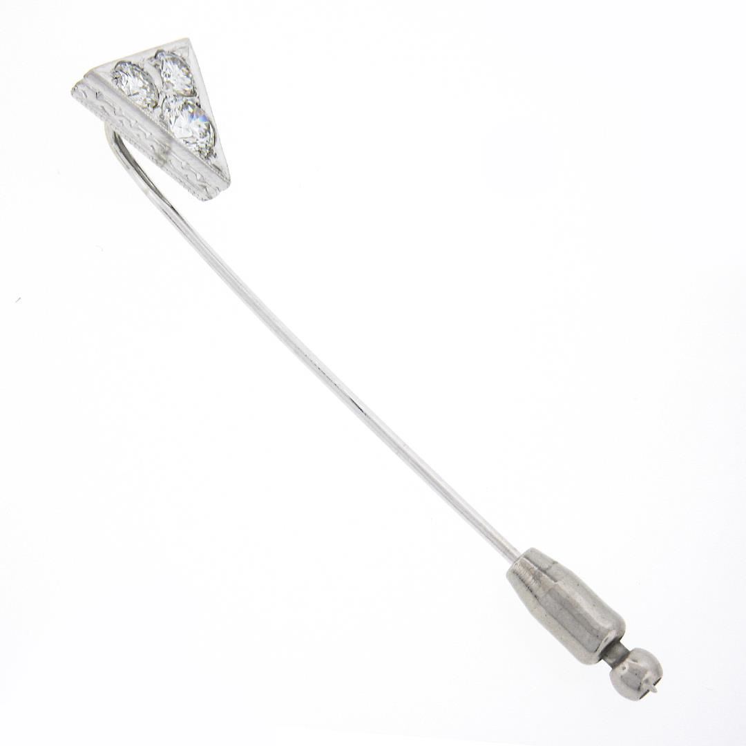A vintage platinum stick pin, with 3 round brilliant cut natural diamonds (H/I - SI1/SI2 ; 1ctw). Measures 58.8x13.5mm and weighs a total of 1.89 grams.