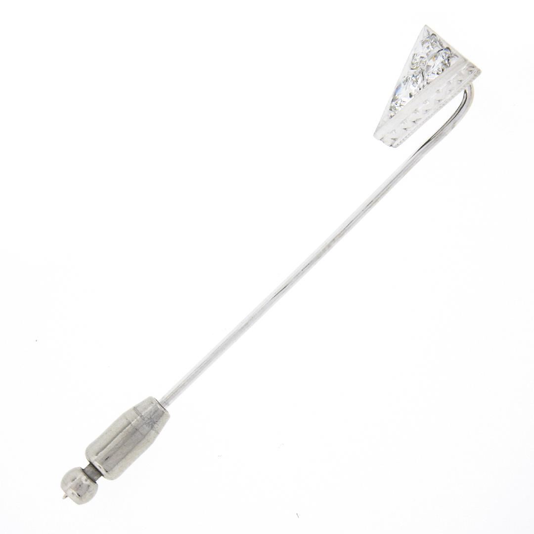A vintage platinum stick pin, with 3 round brilliant cut natural diamonds (H/I - SI1/SI2 ; 1ctw). Measures 58.8x13.5mm and weighs a total of 1.89 grams.