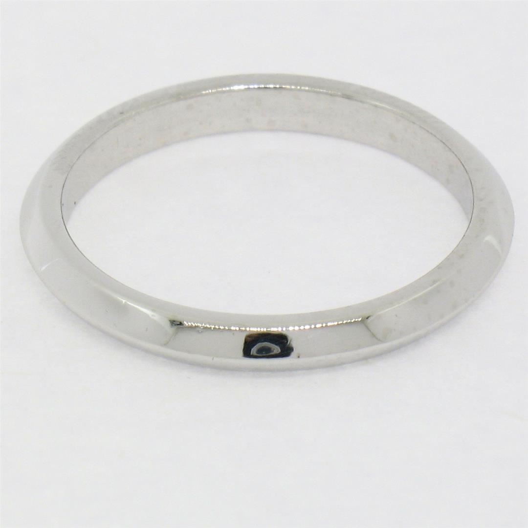 A vintage solid platinum stacklabe wedding band ring. The ring is size 5.0, weighs a total of 3.3grams, and measures 2.25mm wide.