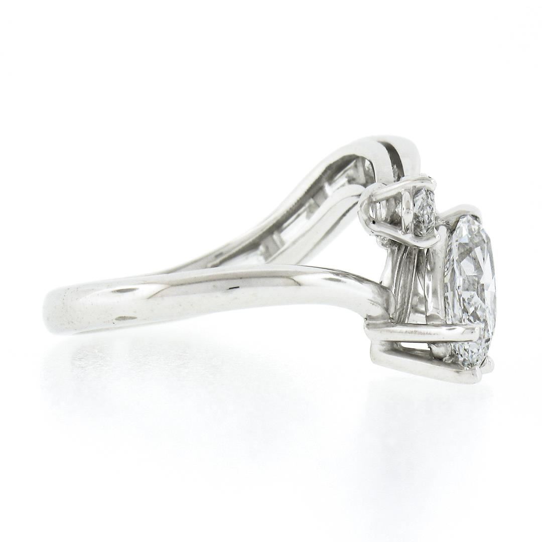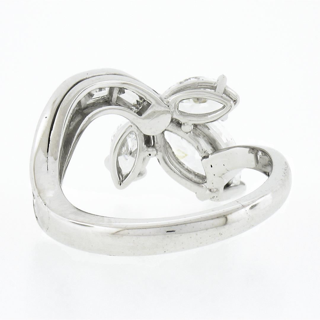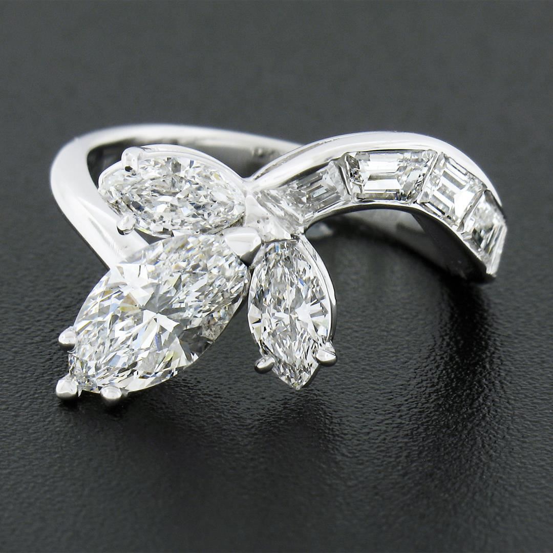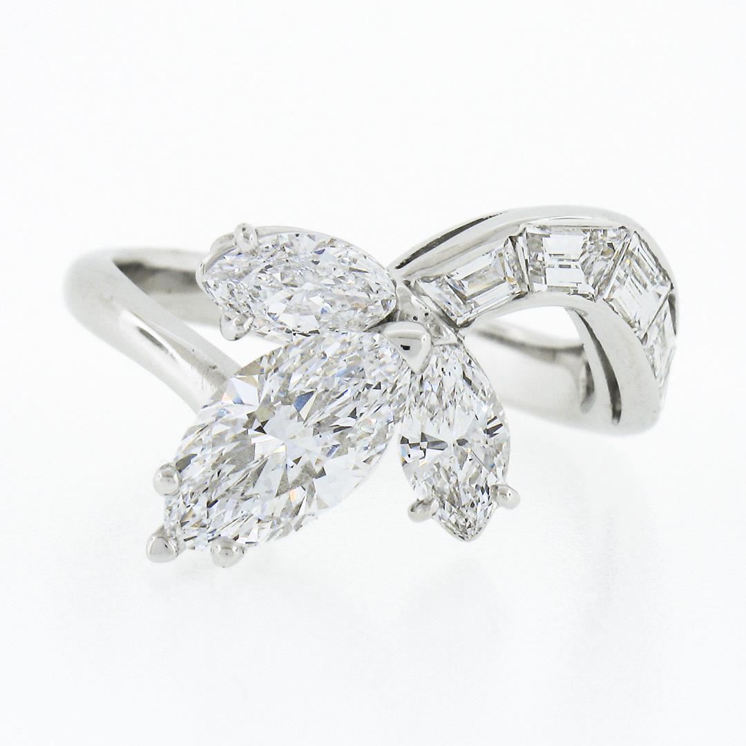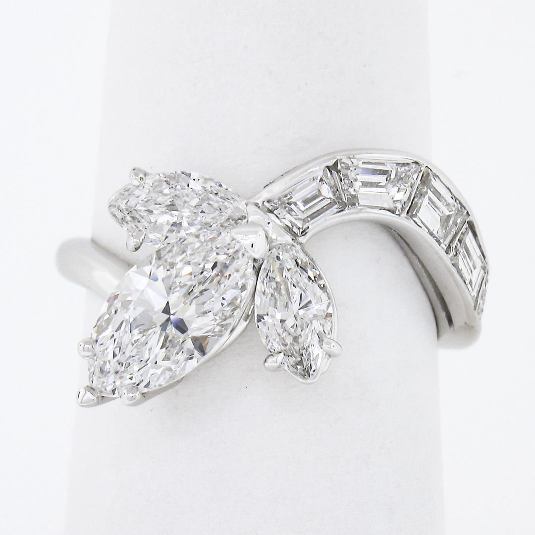 A vintage solid platinum wrap ring, with 1 GIA graded marqiuse cut natural diamond (D - IF ; 1.09ct), and 2 marquise cut natural diamonds (E/F - VVS1/VVS2 ; 0.64ctw), with 5 custom baguette cut natural diamonds (E/F - VVS1/VVS2 ; 0.80ctw). The ring is size 6.0, weighs a total of 5.72 grams, and measures 10.70mm wide. Comes with all original relevant certifications.