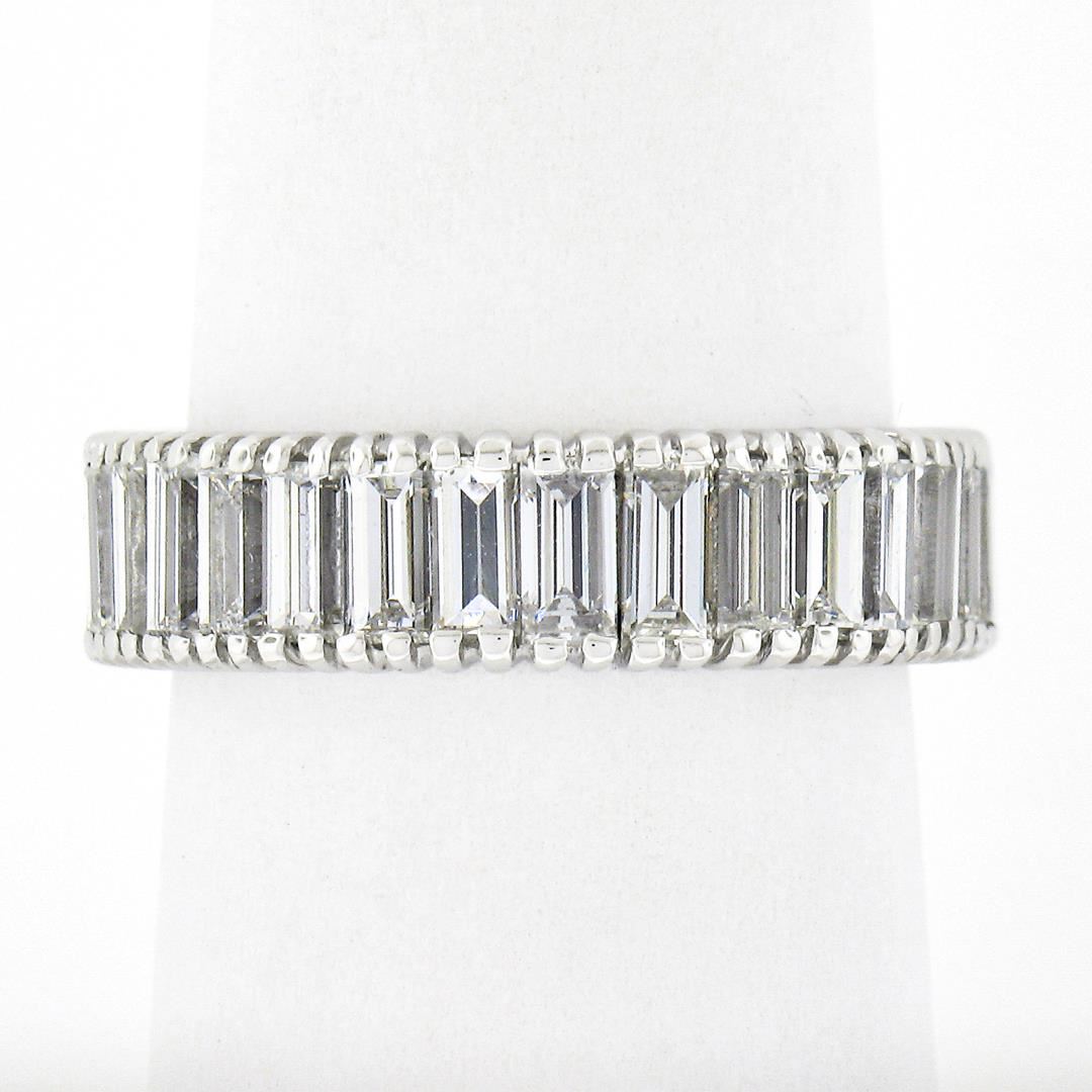 A vintage solid platinum band ring, with 31 straight baguette cut natural diamonds (G/H - VS1/VS2 w/ a few SI1 ; 4.60ctw). The ring is size 7.0, weighs a total of 5.27 grams, and measures 5.7mm wide.