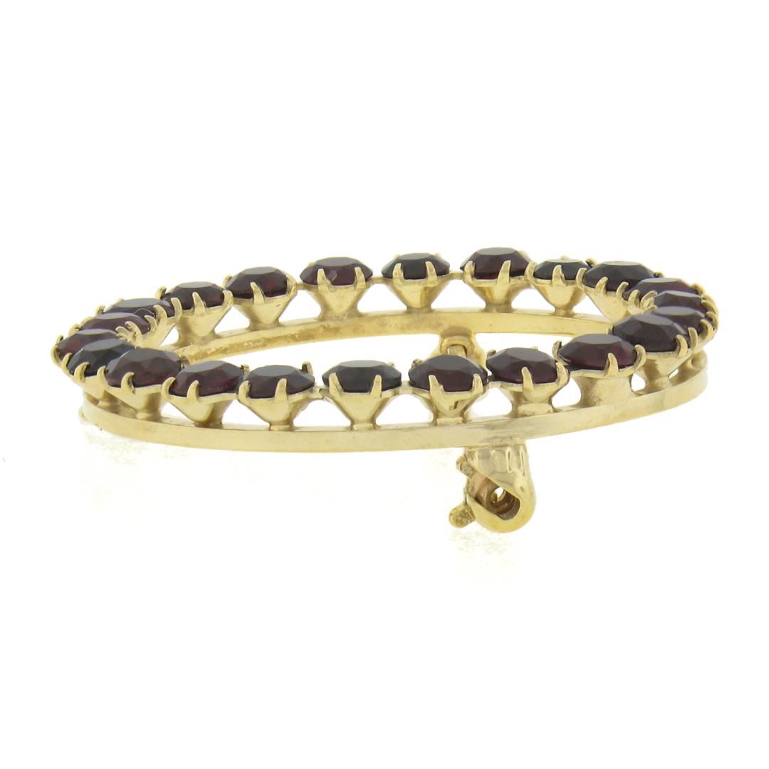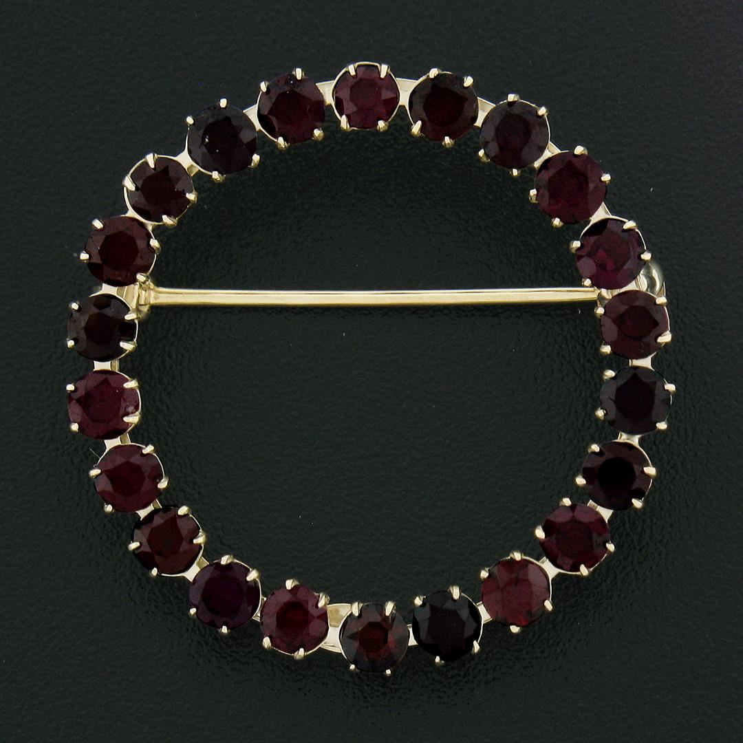 Vintage Retro 14k Yellow Gold 3.3 ctw Round Prong Set Garnet Wreath Circle Brooc