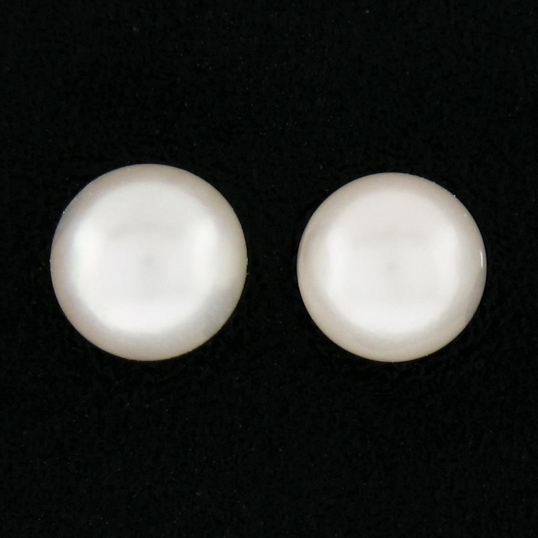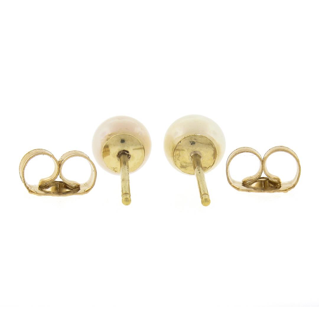 A vintage solid 14k yellow gold stud earrings, with 2 round shape cultured pearls (4.5mm). The earrings measure approximately 4.5mm and weigh a total of 0.58 grams.
