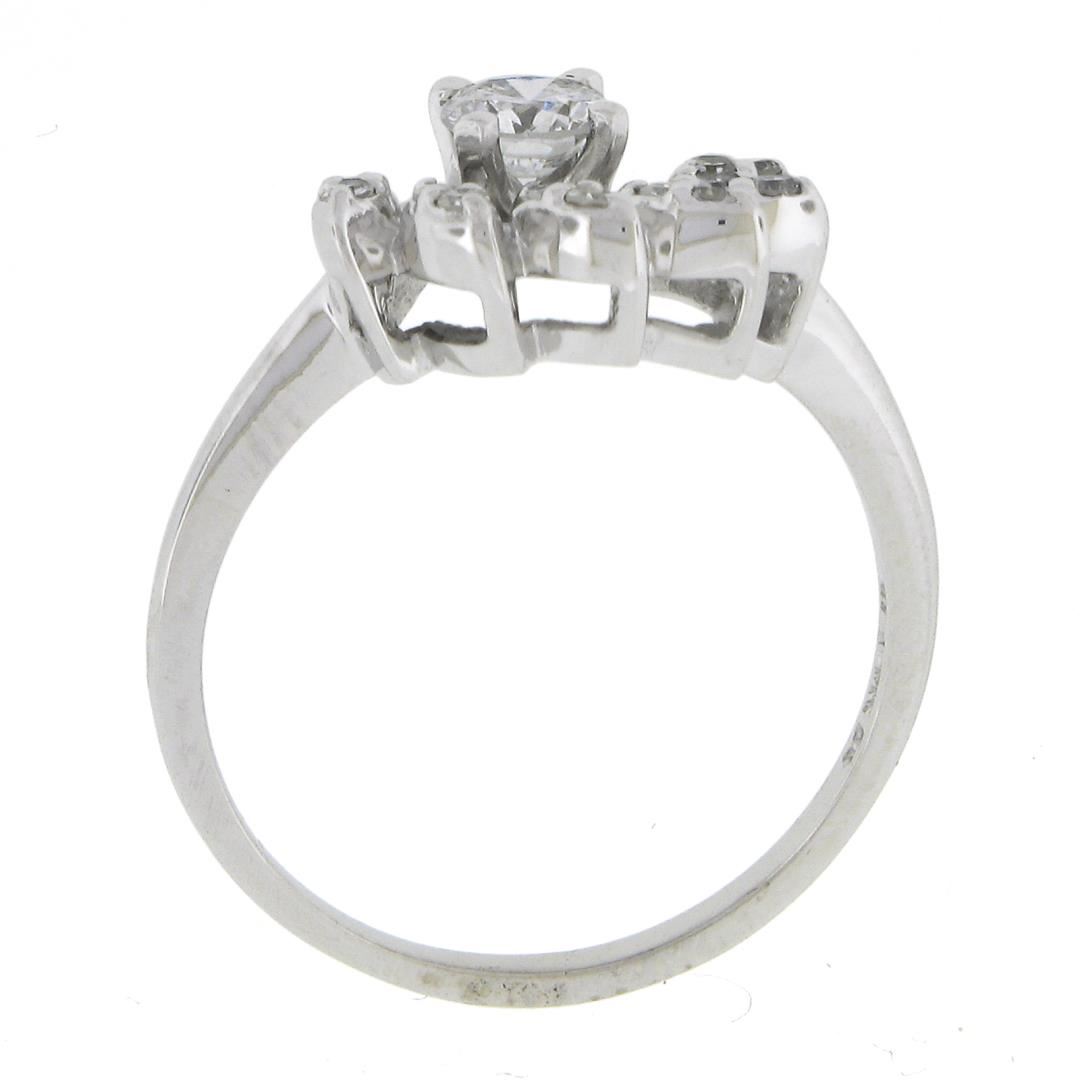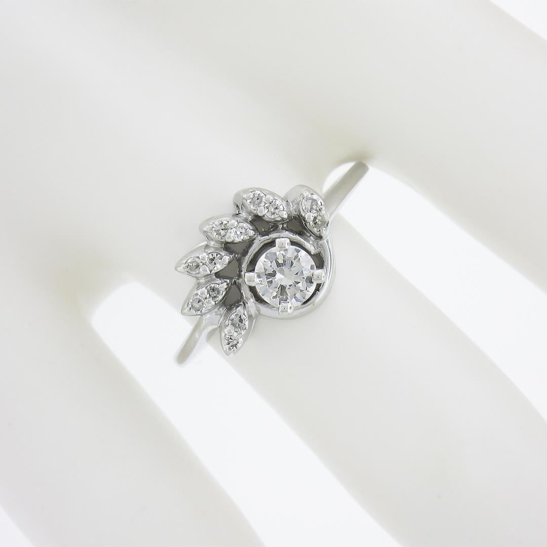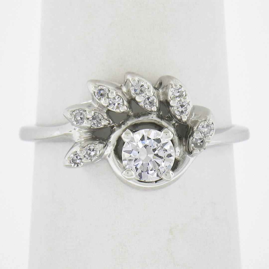 Vintage Solid 14k White Gold 0.45ctw Round Solitaire Diamond w/ Flame Ring