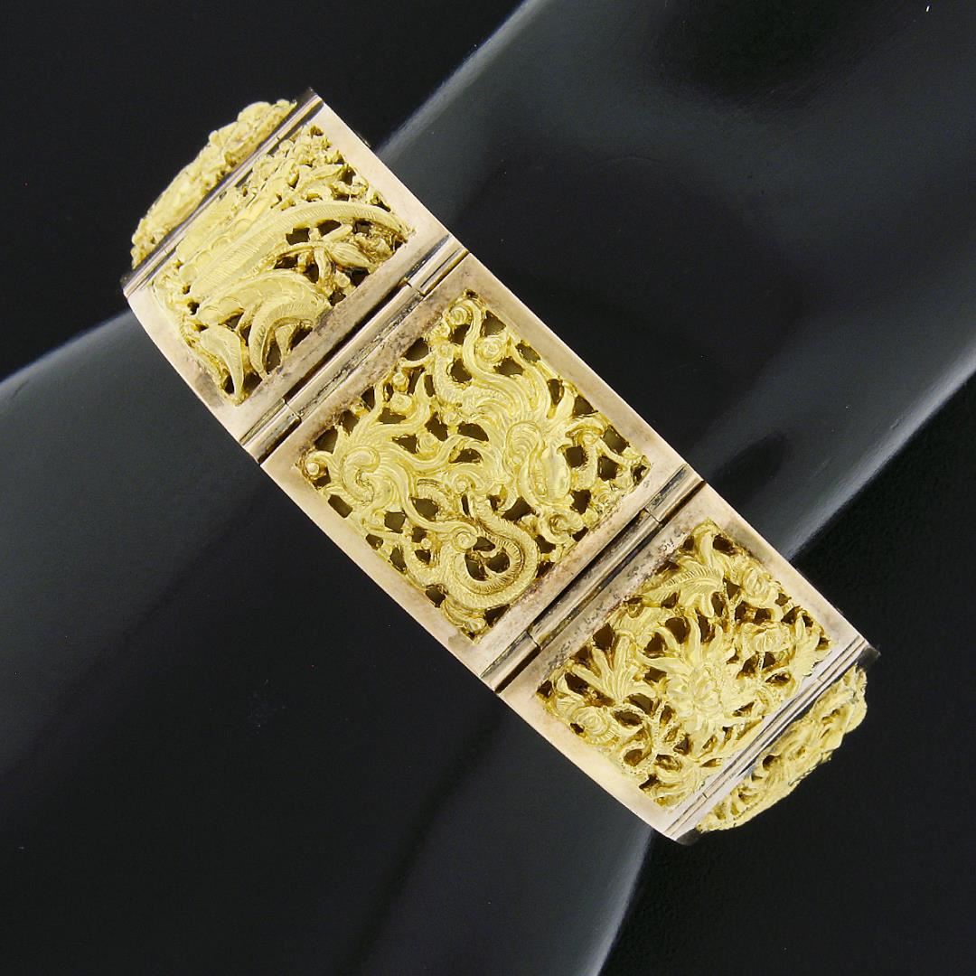 Vintage Solid 18k Yellow Gold Nautical Themed Hinged Square Panel Link Bracelet