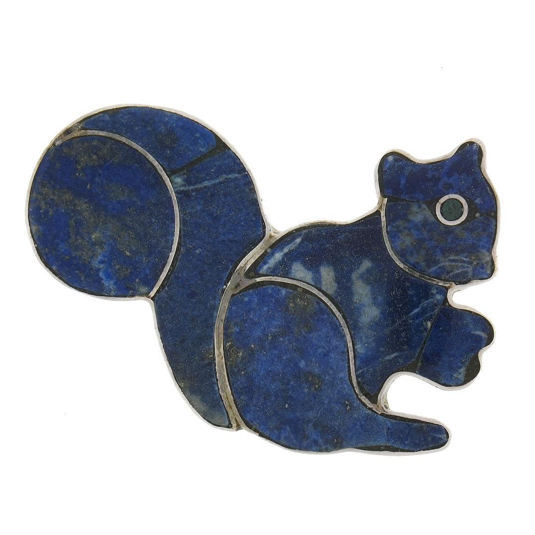 A vintage solid silver squirrel brooch, with custom cut natural lapis lazuli . Measures 31.5x43.7mm and weighs a total of 8.50 grams.