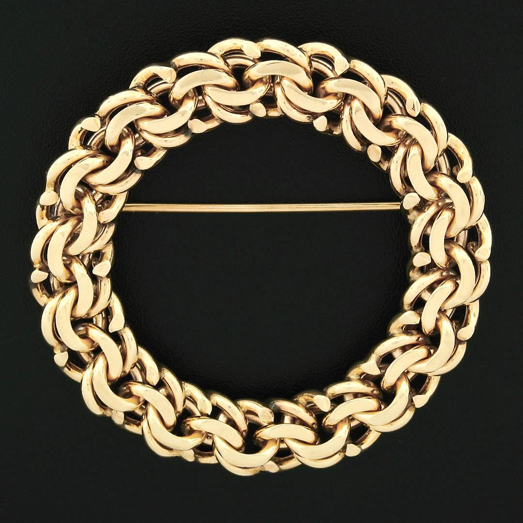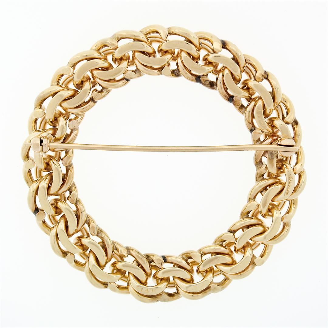 A vintage 14k yellow gold wreath brooch by Tiffany and Co. Measures 51mm in diameter and weighs a total of 29.12 grams.