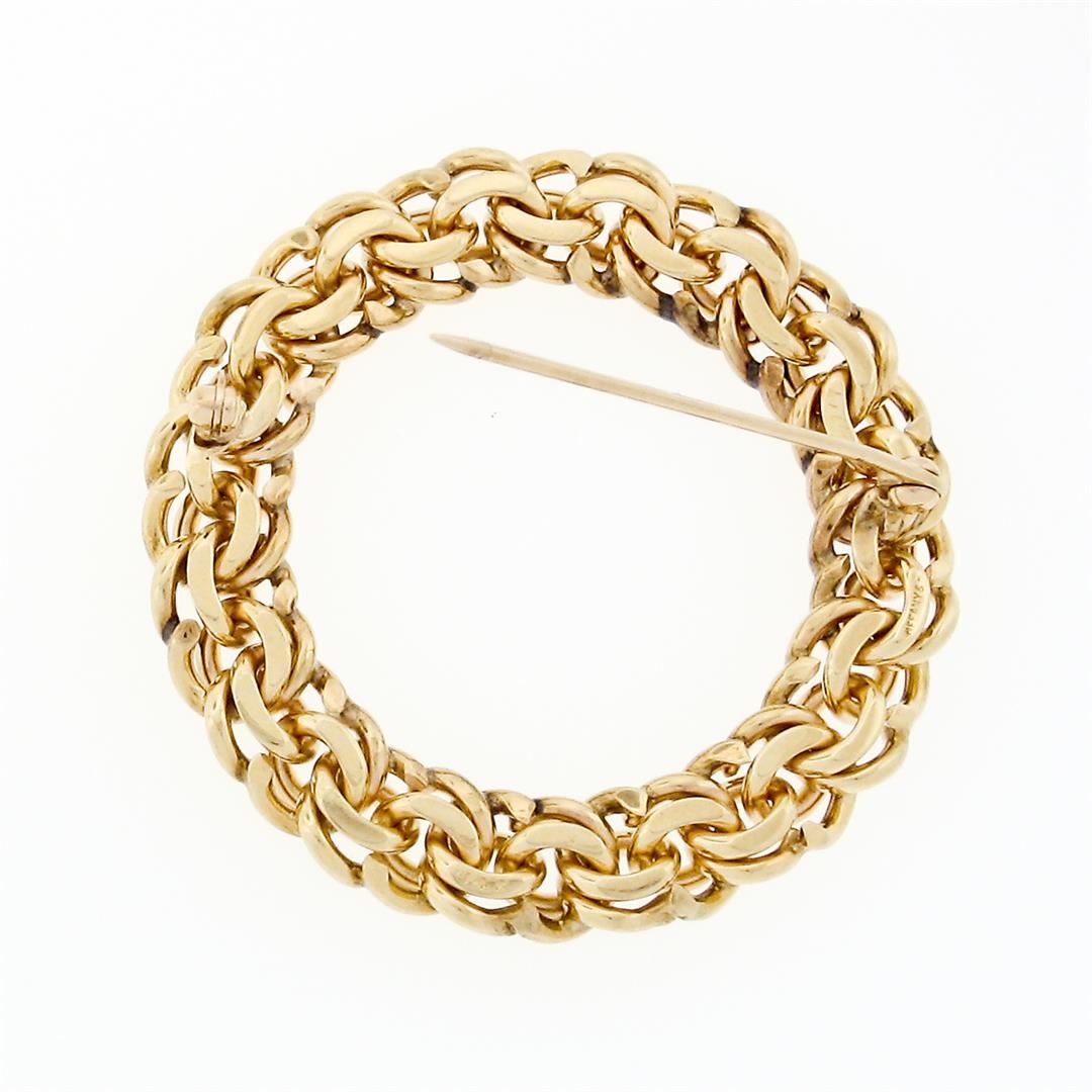 A vintage 14k yellow gold wreath brooch by Tiffany and Co. Measures 51mm in diameter and weighs a total of 29.12 grams.
