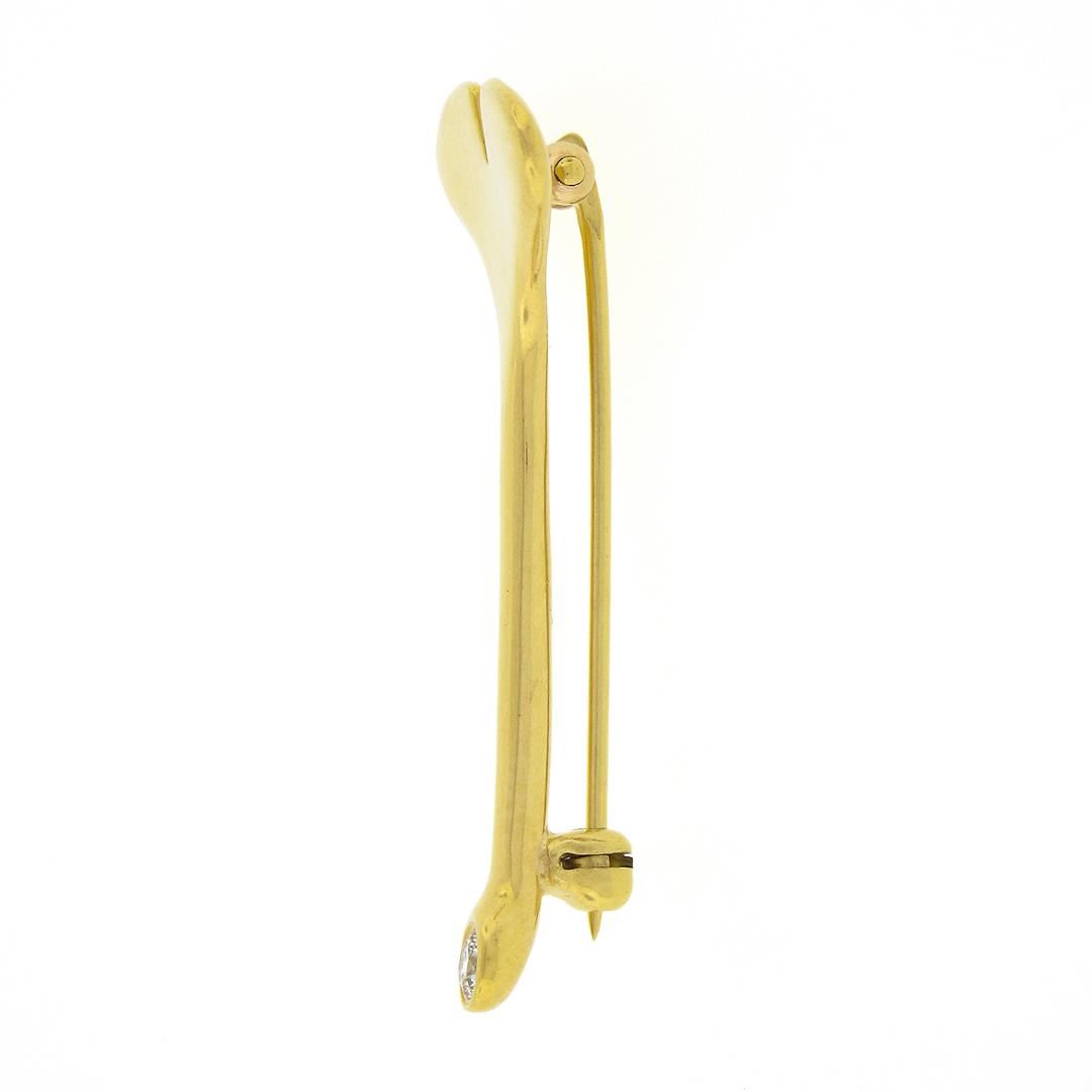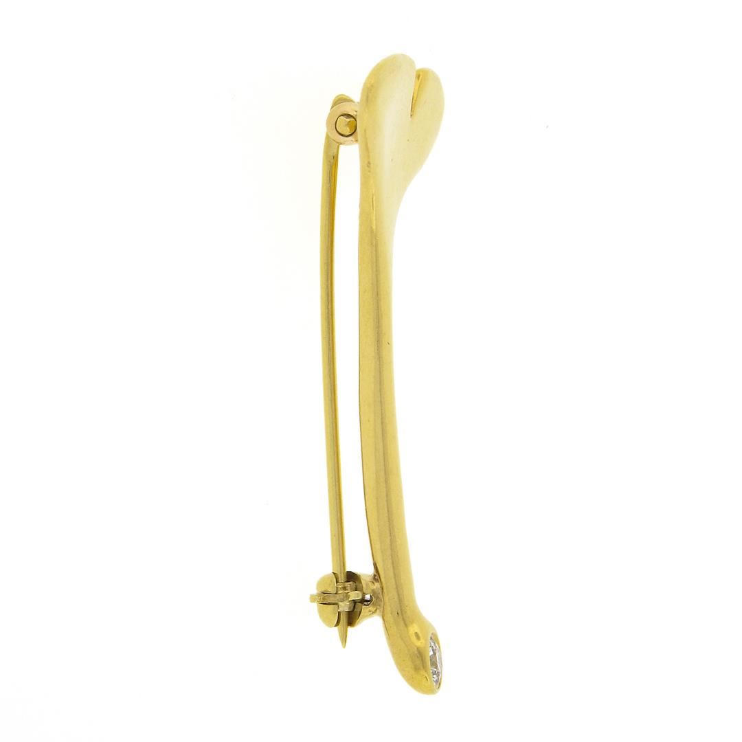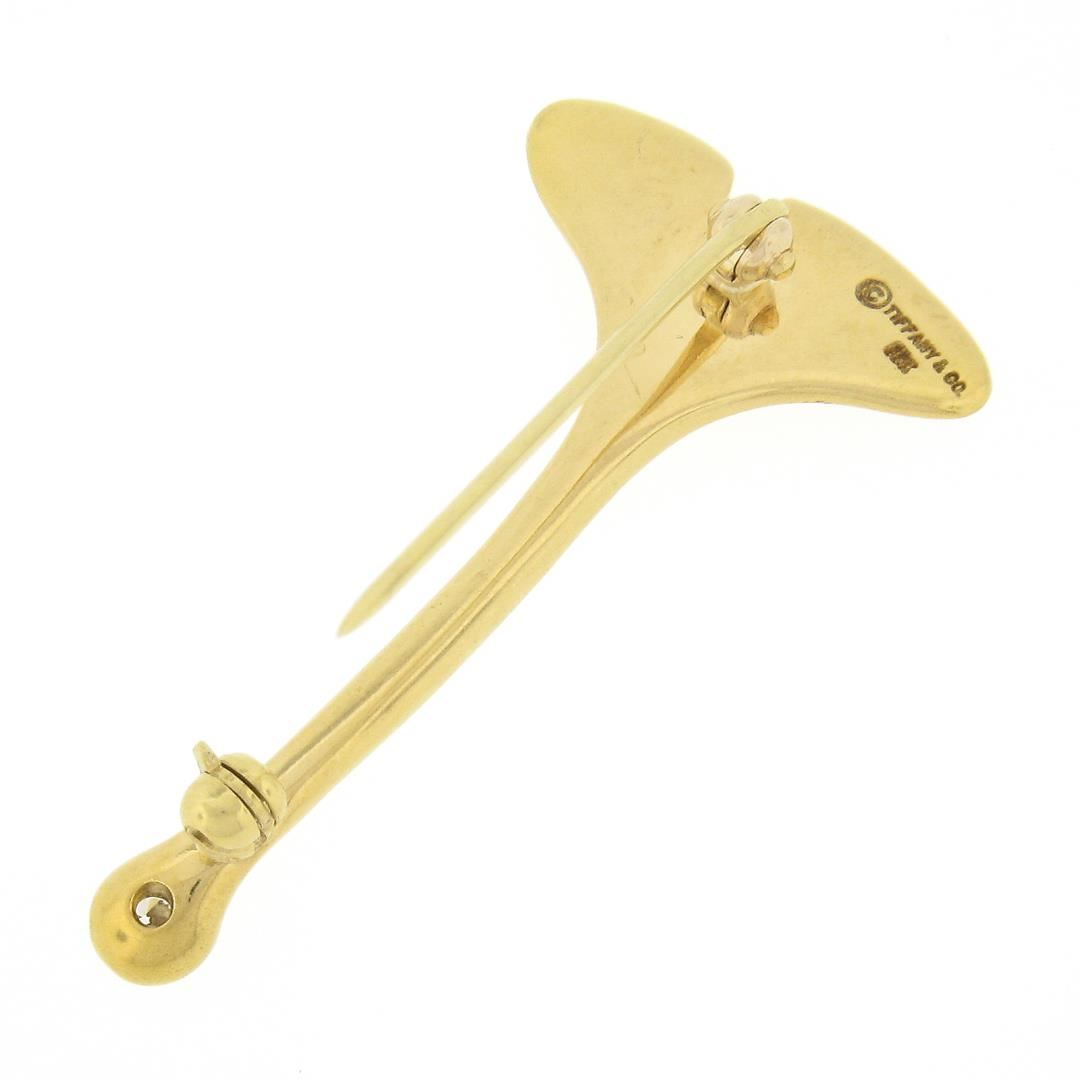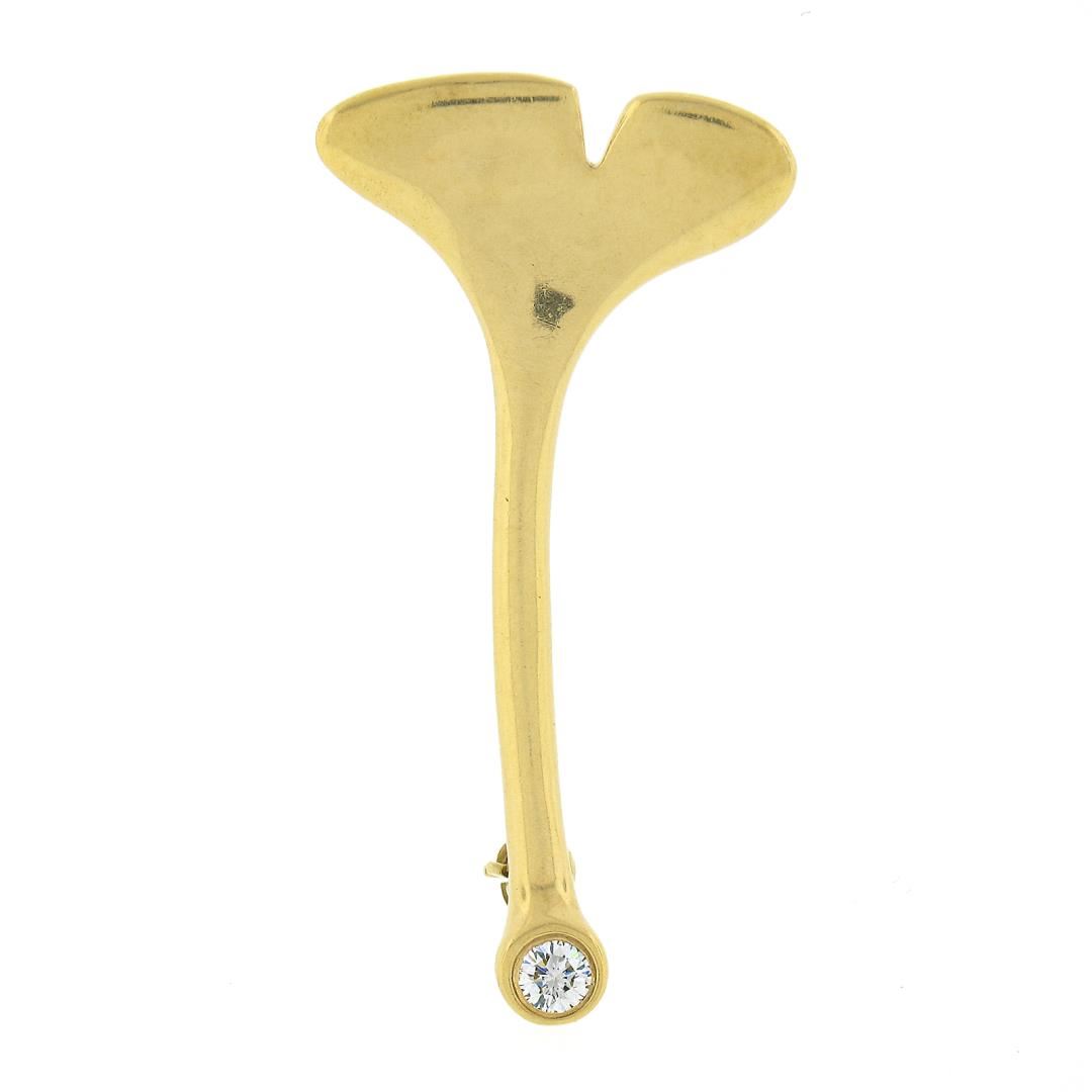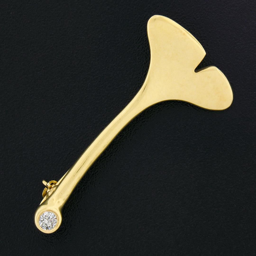 A vintage solid 18k yellow gold brooch by Tiffany & co. with 1 round cut natural diamond (F - VS1 ; 0.10ct). Measures 36.5x18.5mm and weighs a total of 4.76 grams.