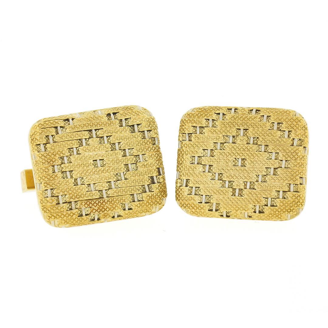 A vintage solid 18k yellow and white gold cufflinks by Tiffany & Co. These cuff links have a swivel design with a clearance of 12.9mm, weigh a total of 23.70 grams, and the front panels measure 22.9x19.4mm
