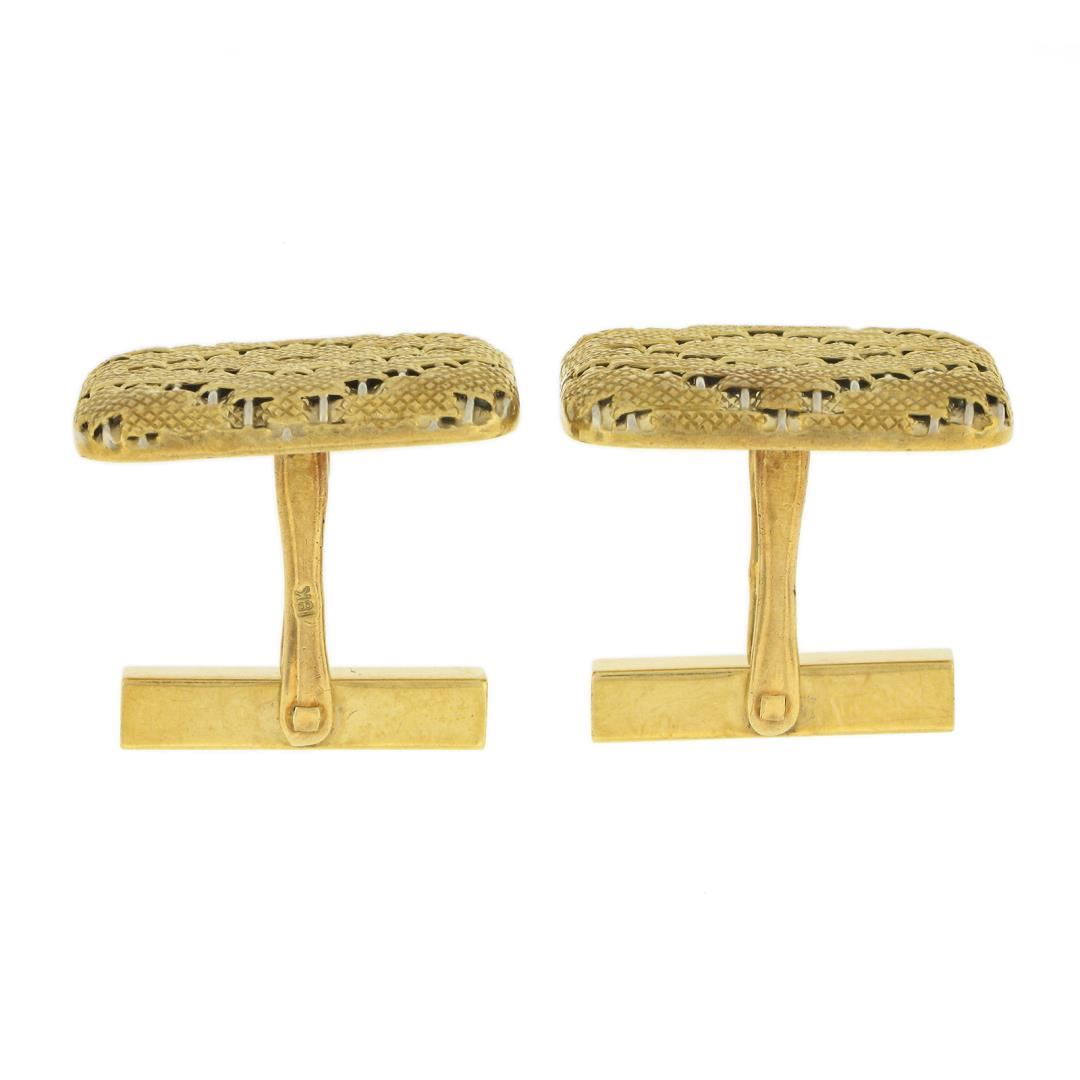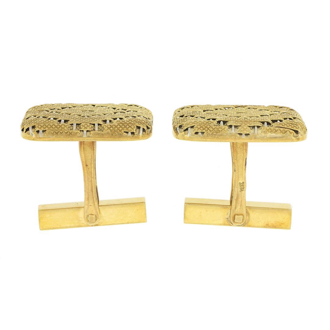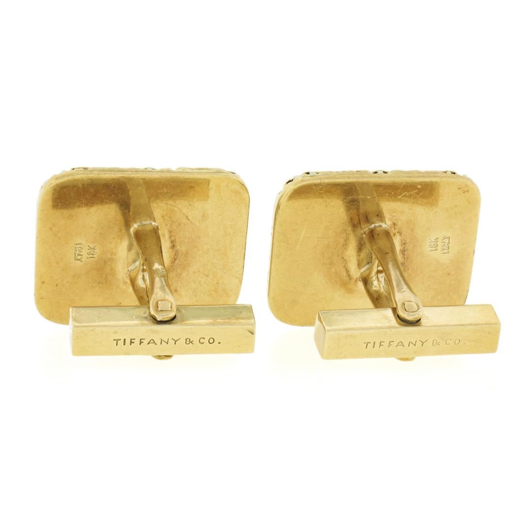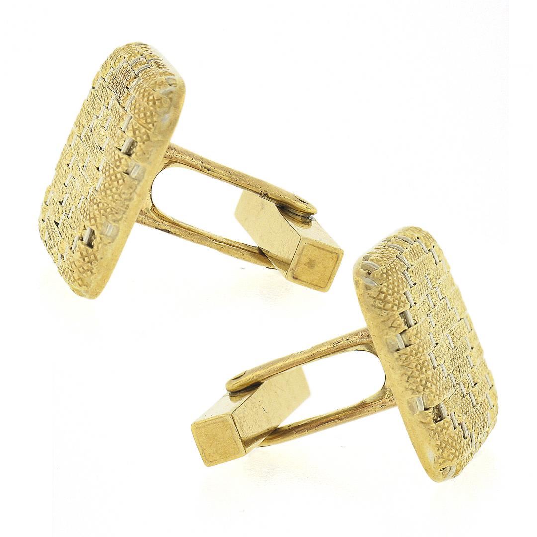 A vintage solid 18k yellow and white gold cufflinks by Tiffany & Co. These cuff links have a swivel design with a clearance of 12.9mm, weigh a total of 23.70 grams, and the front panels measure 22.9x19.4mm