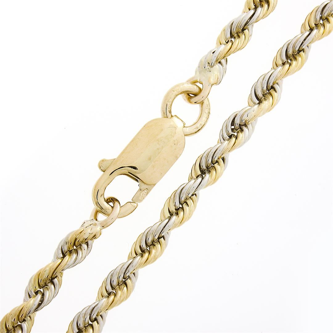 A vintage solid 18k yellow and white gold rope link chain. It weighs a total of 22.80 grams, measures 3.3mm wide, and measures 18 inches in length.