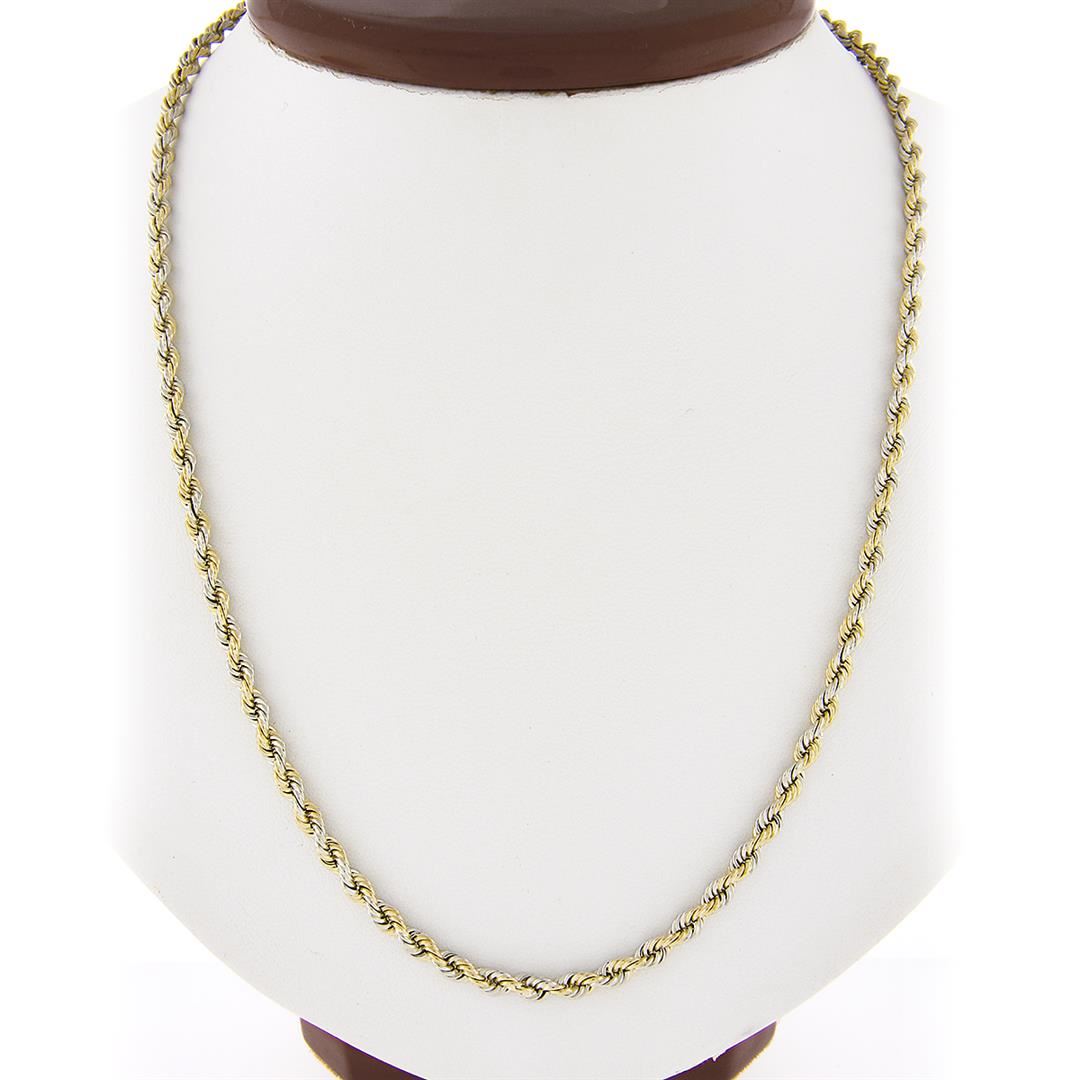 A vintage solid 18k yellow and white gold rope link chain. It weighs a total of 22.80 grams, measures 3.3mm wide, and measures 18 inches in length.