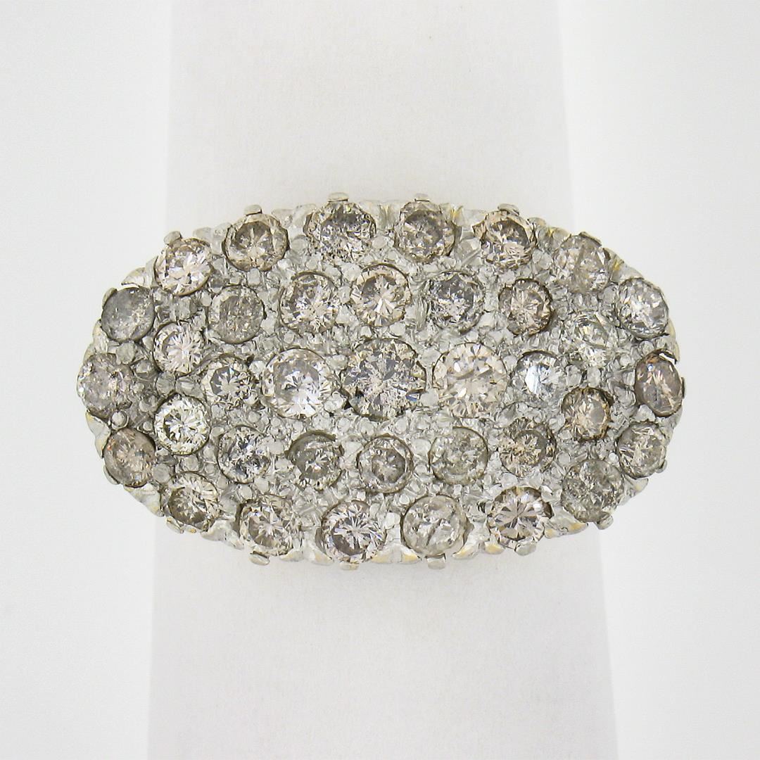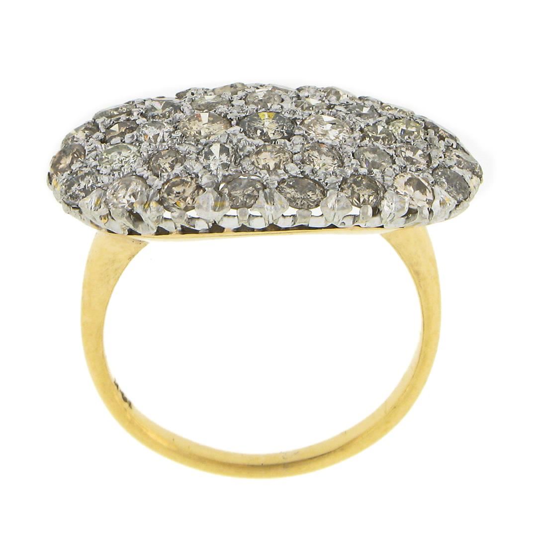 A vintage solid 14k yellow & white gold platter ring, featuring 37 round brilliant & old transitional cut natural white & champagen diamonds (H/I To Different Shades of Champagne Color - SI2/I2 ; 1.40ctw). The ring is size 5.5, weighs a total of 4.44 grams, and measures 13.8mm wide.