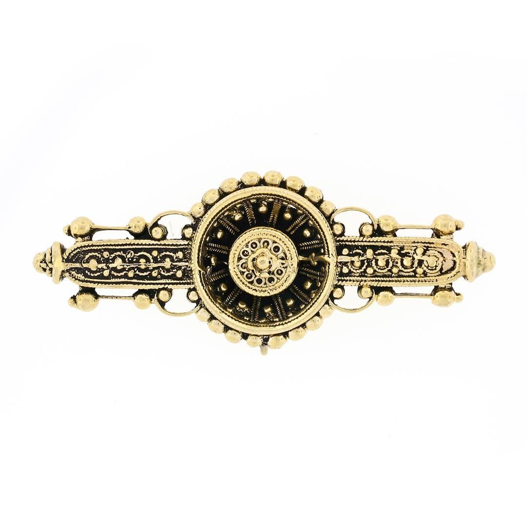 A vintage victorian revival solid 14k yellow gold bar pin brooch. Measures 18.8x48.6mm and weighs a total of 10.01grams.