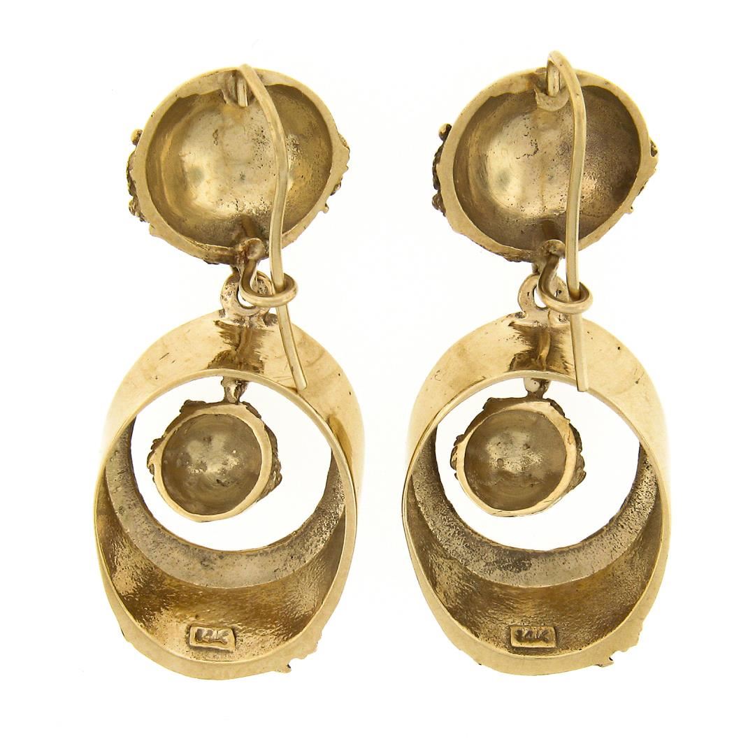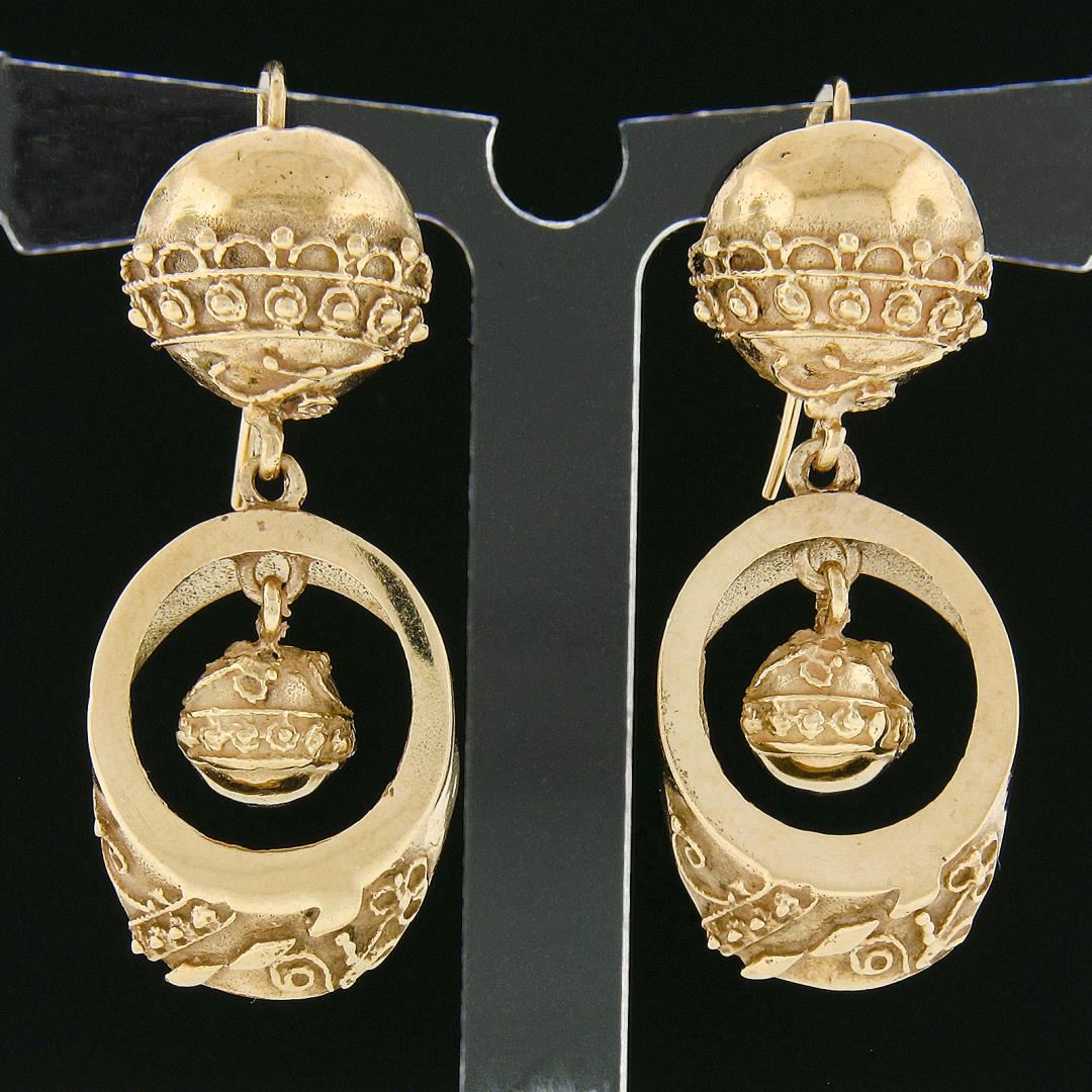A vintage solid 14k yellow gold dangle earrings.The earrings measure approximately 43.25x17.10mm and weigh a total of 12.19 grams.