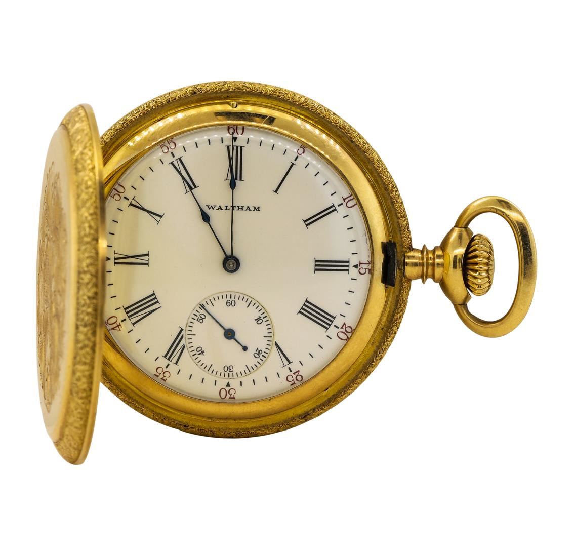 One Waltham vintage 14KT Yellow Gold Pocketwatch. Total Weight of Watch: 81.47.