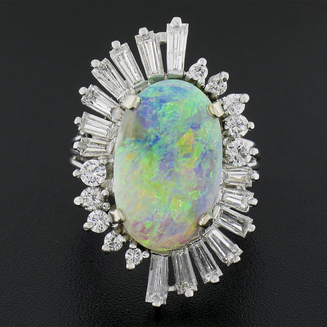 Vintage White Gold Oval Cabochon Opal & Diamond Ballerina Halo Cocktail Ring