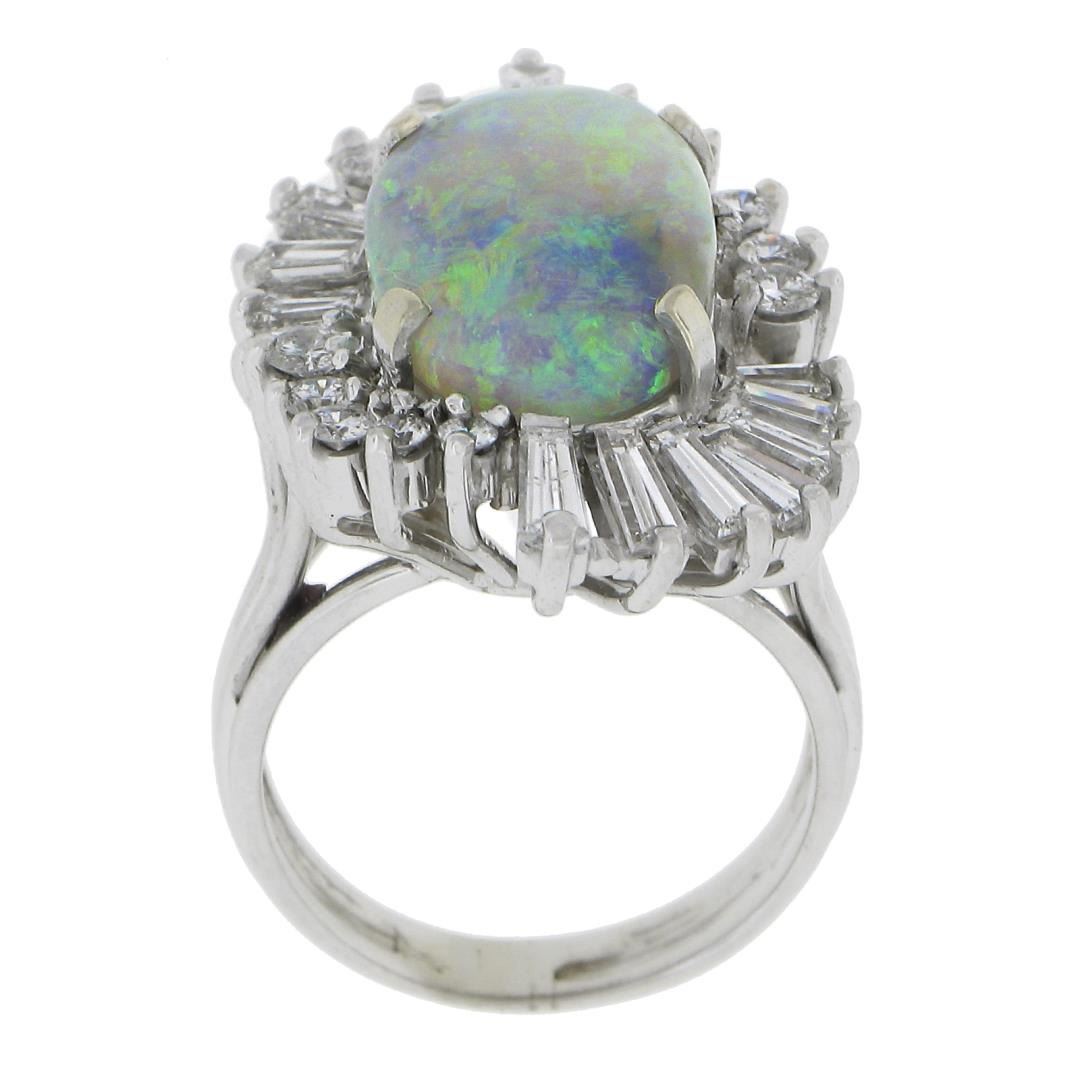 Vintage White Gold Oval Cabochon Opal & Diamond Ballerina Halo Cocktail Ring