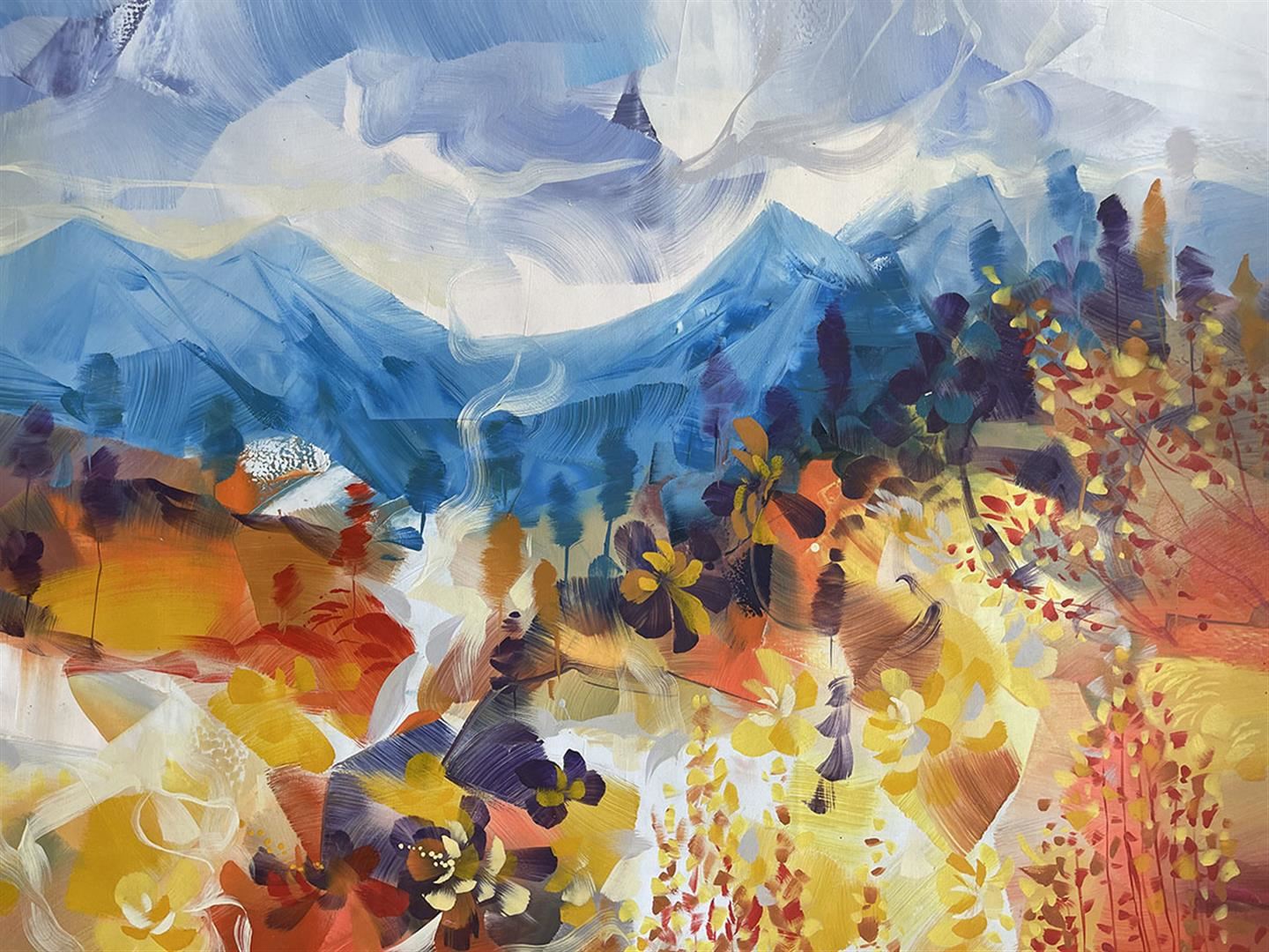 Amazing original acrylic on canvas. Hand signed by artist. This artwork comes rolled. Approximately 80x48 inches