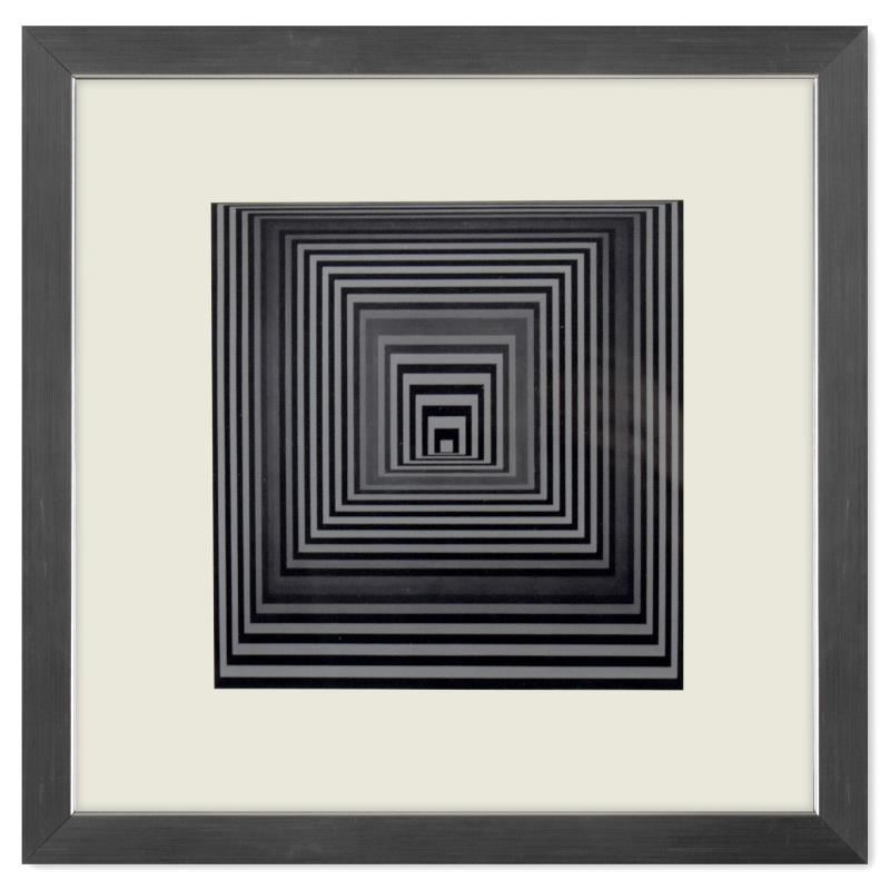 Vonal - 4 de la serie Vonal by Vasarely (1908-1997). "Vonal - 4 de la série Vonal" is a heliogravure print on paper, published in 1971, by Victor Vasarely (1908-1997). This piece comes custom framed, with a letter of authenticity and with a 1976 Vasarely paperback. Measures approx. 11.5" x 11.5" (frame), 7" x 7" (image).