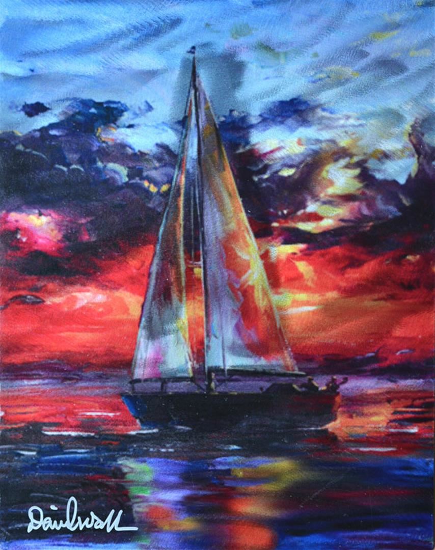 WALL ** OCEAN SUNSET ** ORIGINAL . Artist: Daniel Wall - Title: Ocean Sunset - Medium: Original Mixed Media on Metal - Signature: This one-of-a-kind work is hand-signed by the artist at the bottom of the image - Image Size: Approximately 10 inches x 8 inches - Framed: Unframed - Details: This work comes with a Certificate of Authenticity - Note: Daniel uses a grinder, etching into the metal to create the painting structure and to reflect waves of light. Then he uses airbrush and acrylic brush, accompanied by firing or a blow torching process to make colors flow seamlessly from one hue to the next. This gives them a marbleized glisten, while the transparency of his layers of paint creates illusion of incredible depth, mysteriousness and light. - Biography: Daniel Wall studied fine arts at Florence University of Italy in 1983, where within a few years he established his reputation as a rising superstar artist. In 1990, he visited and studied oriental art at Beijing Normal University and received his Bachelor of Fine Arts degree. From 1995 to 1999 he was a fine art professor at Shandong University and published hundreds of illustrations in journals and books. He also holds a Master's degree from Georgia Southern University, United States. Daniel Wall has exhibited and won many awards in the U.S., Italy, Japan, China, Germany and Spain. - Daniel Wall's originals have sold for more than $40,000.00. - Warranty: Item GUARANTEED to be as described