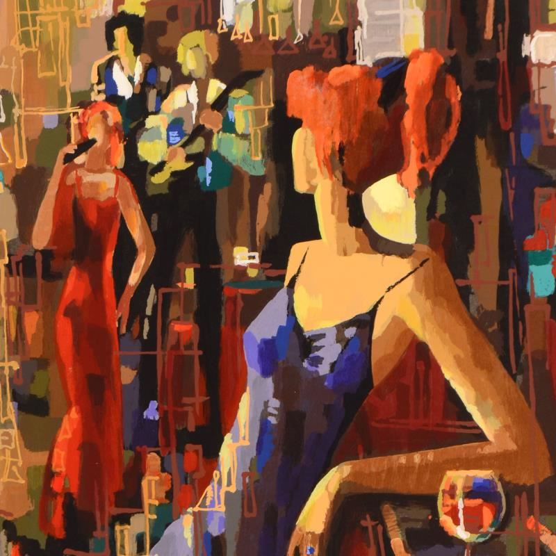 "Waiting for You" is a limited edition serigraph on paper numbered and hand signed by Nelly Panto. Includes Certificate of Authenticity. Measures approx. 22.5" x 22.5" (border) 20.5" x 20.5" (image).