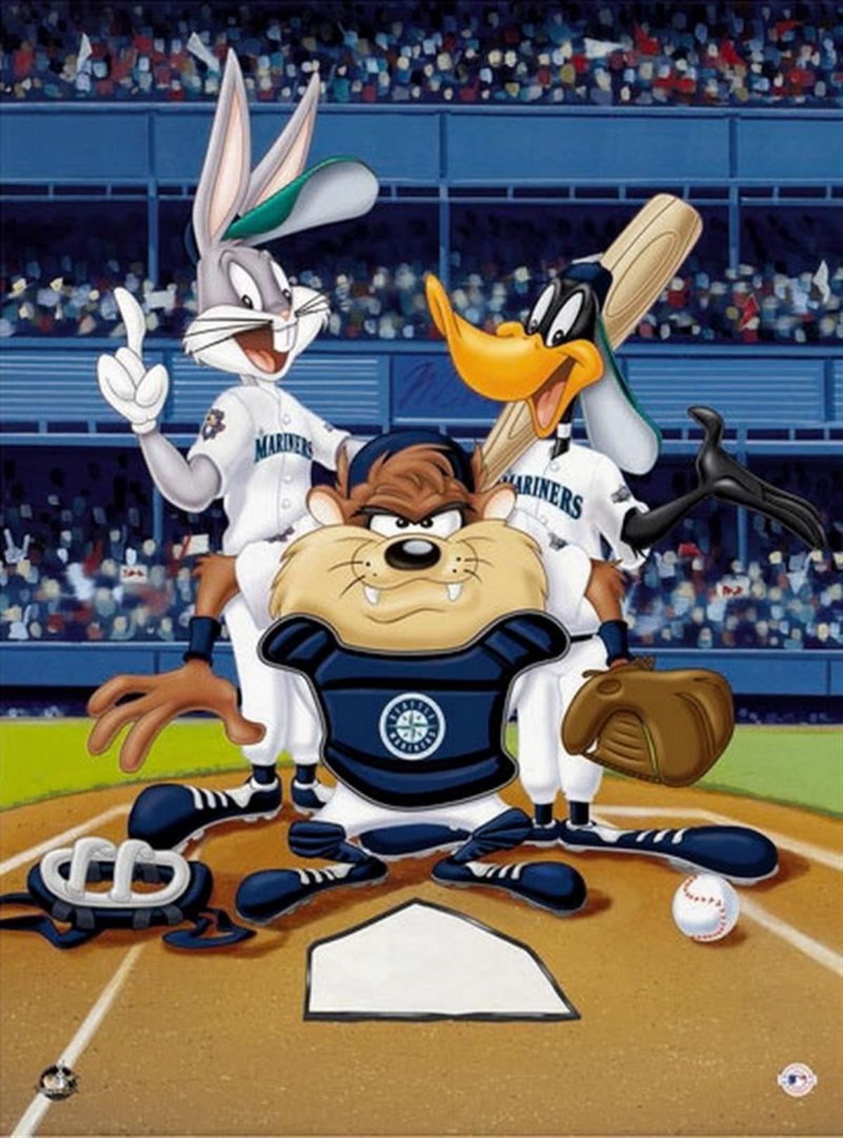 Artist: Warner Brothers - Title: At the Plate Mariners - Medium: Giclee on Fine Art Paper - Limited Edition: 500 - Image Size: Approximately 16 Inches x 12 inches - Paper Size: Approximately 20 inches x 16 inches - Unframed - Details: This work comes with a Warner Brothers Hologram for Authenticity - The three Warner Directors were expected to turn out ten six-minute cartoons each year, or one every five weeks! And, each director had his own lead designer, background artist, and a team of animators. Mel Blanc provided the common thread as the man of a thousand voices, and Carl Stalling is most recognized as the Music Director for the majority of the Warner Bros. shorts