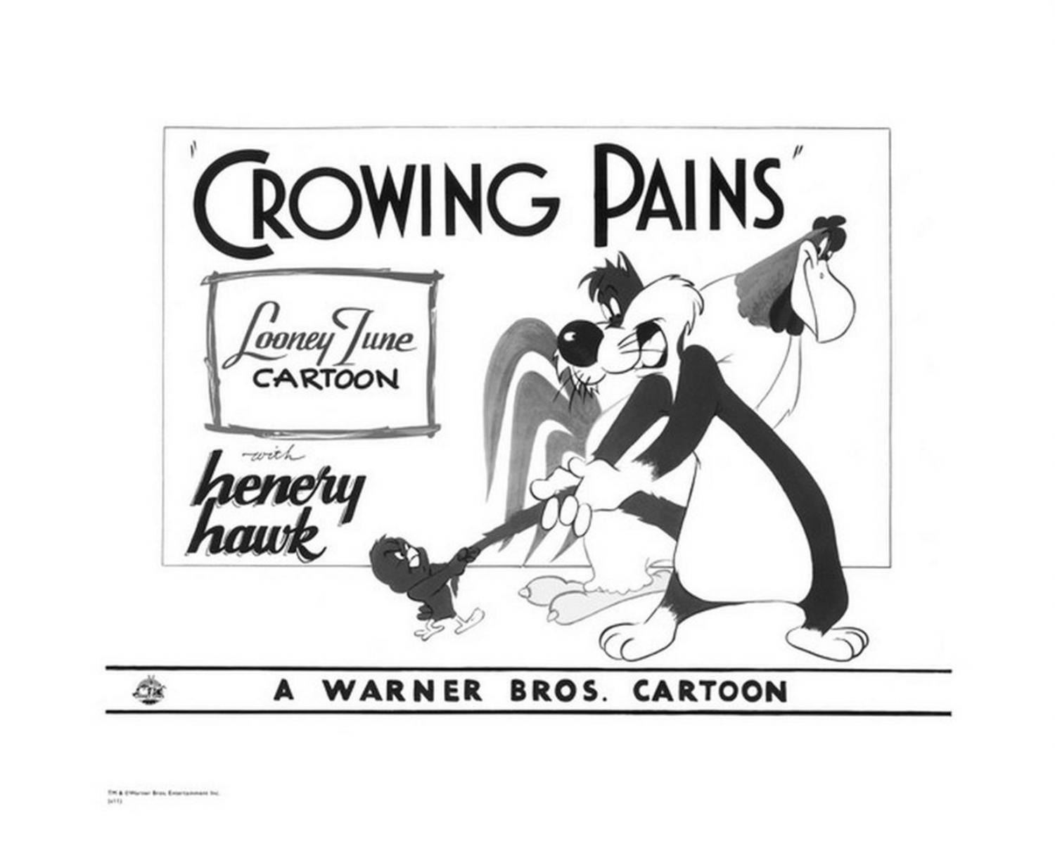 Artist: Warner Brothers - Title: Crowing Pains Sylvester - Medium: Giclee on Fine Art Paper - Limited Edition: 500 - Image Size: Approximately 12 Inches x 16 inches - Paper Size: Approximately 16 inches x 20 inches - Unframed - Details: This work comes with a Warner Brothers Hologram for Authenticity - The three Warner Directors were expected to turn out ten six-minute cartoons each year, or one every five weeks! And, each director had his own lead designer, background artist, and a team of animators. Mel Blanc provided the common thread as the man of a thousand voices, and Carl Stalling is most recognized as the Music Director for the majority of the Warner Bros. shorts