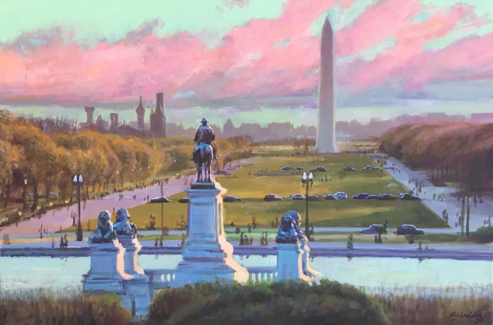 A view down the Mall towards the Washington Monument. An original 24x36 acrylic on stretched canvas, by Richard ZuMing Ho w/COA.