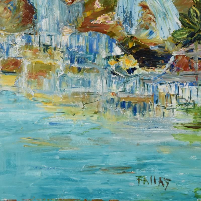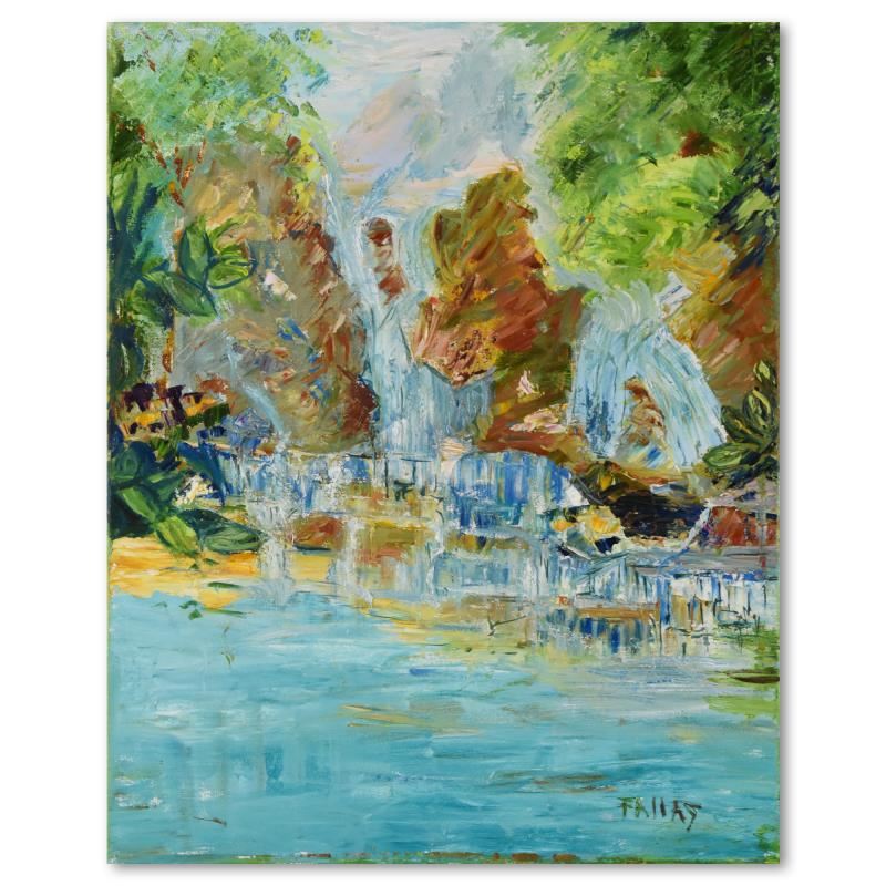 "Water Dance" is an original oil painting on stretched canvas by Elliot Fallas, hand signed by the artist. Includes Letter of Authenticity. Measures approx. 16" x 20" (image). The sides of the canvas are painted and it can be hung as is, but a frame is definitely recommended.