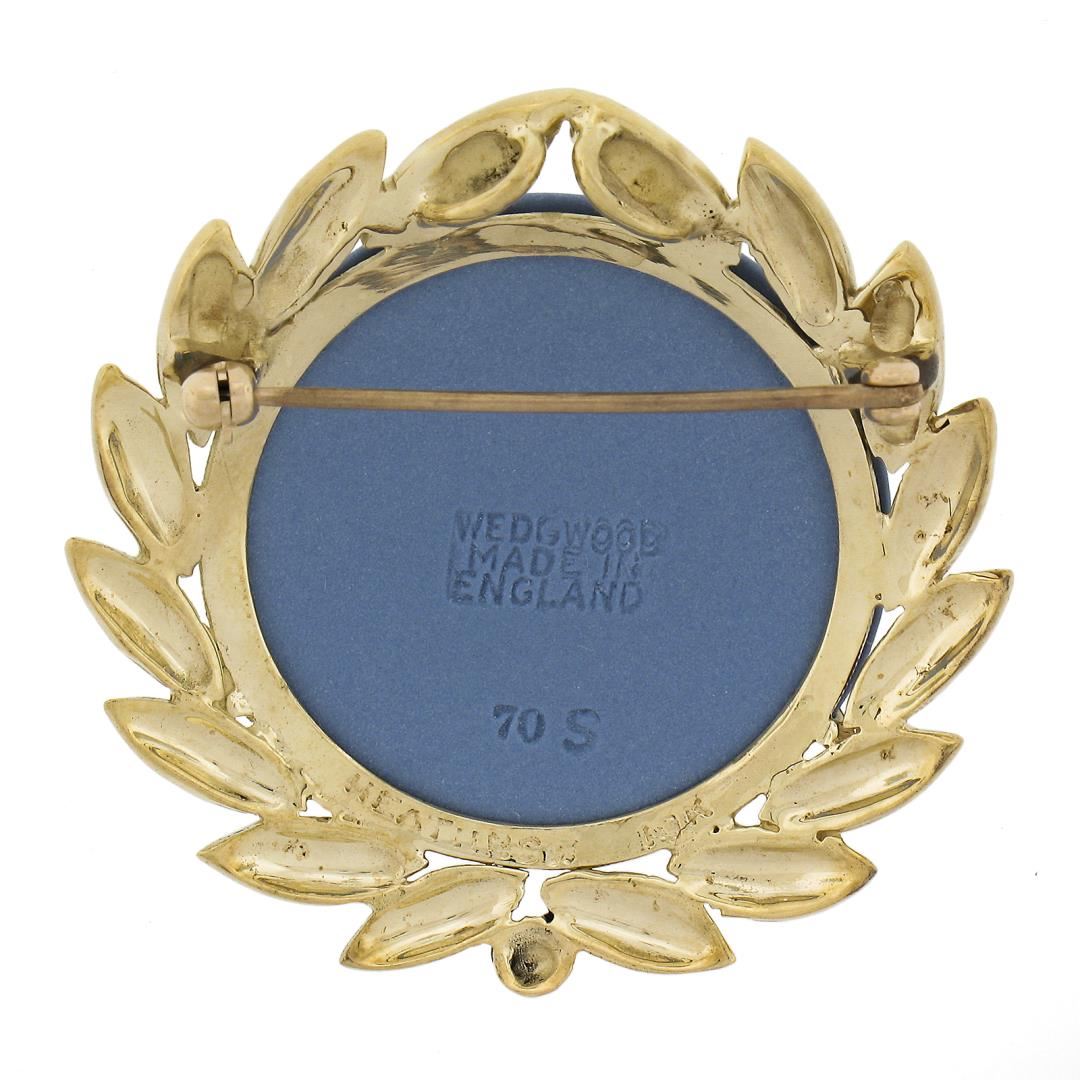 A solid 10k yellow gold brooch pendant by Wedgwood Laurel, with 1 round cut jasper (28.7mm). Measures 39.2mm and weighs a total of 10.71 grams, and inside bail dimensions 3.5x2.2mm.