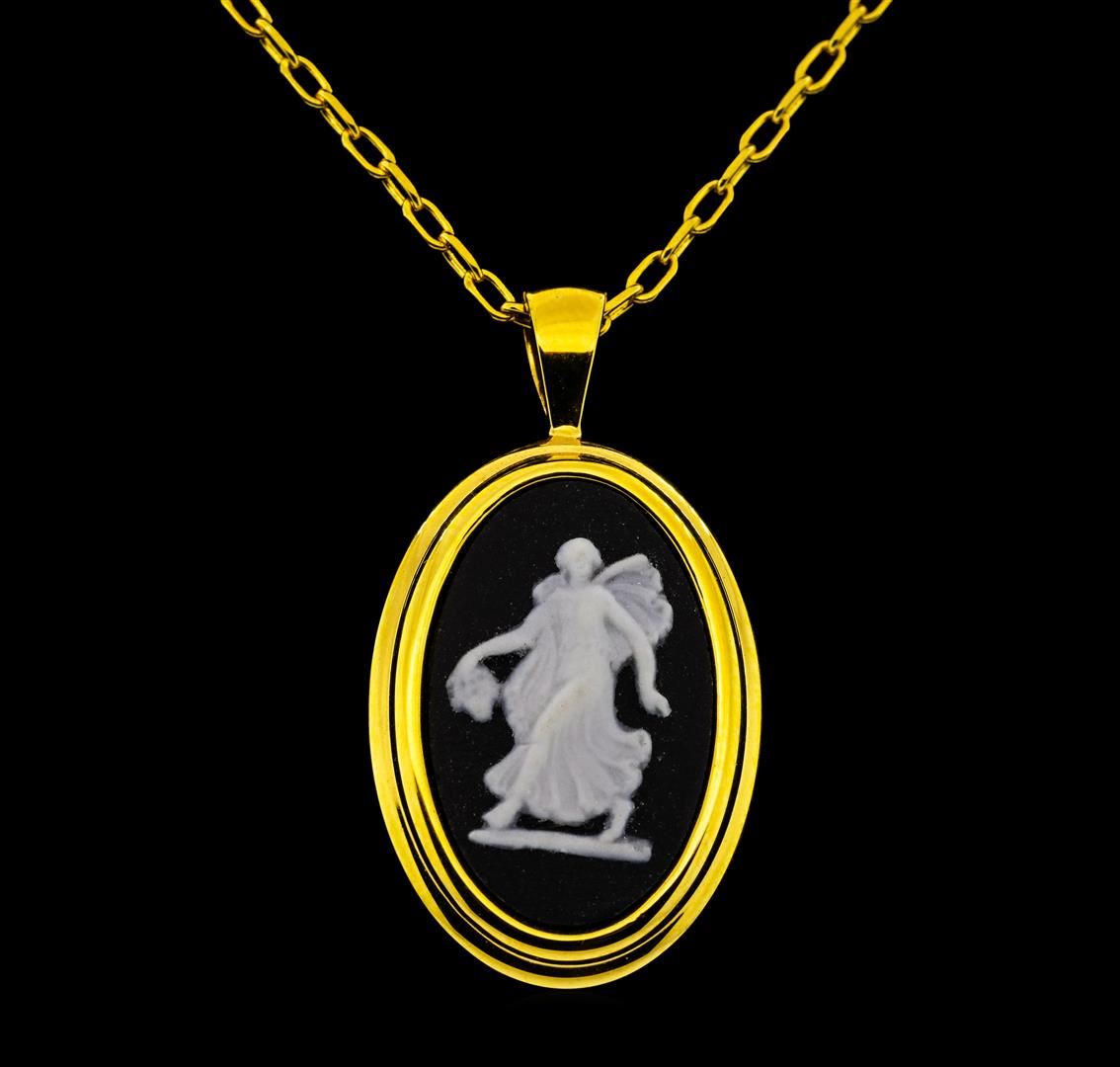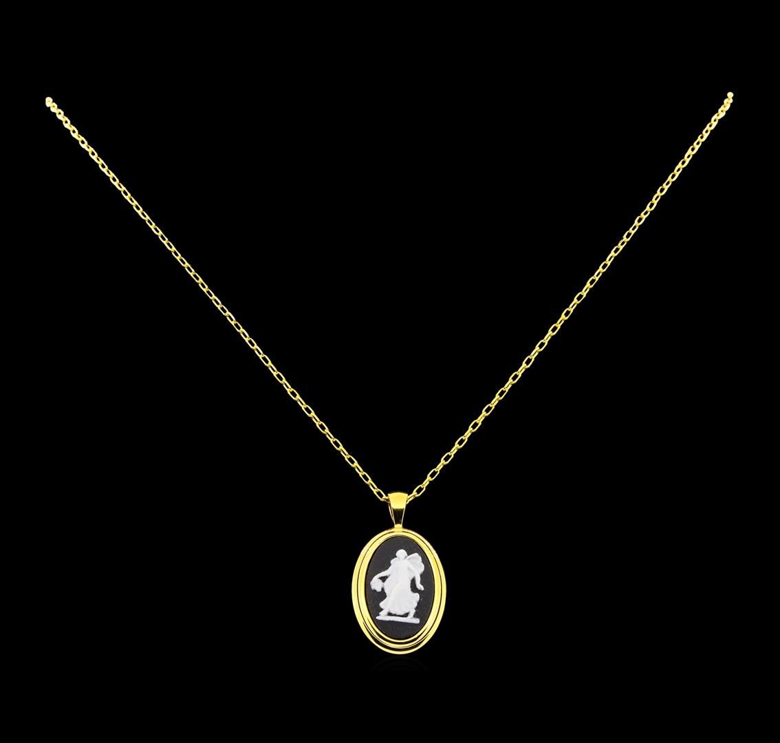 Wedgwood Women's Classic Muse Pendant New with Tags. This stunning Pendant features a white bas-relief rendering of the Floral Girl. It's set against the splendor of black jasper. Chain length is 18". White Gold Plated. Oval Shape - measures 1"x .5". Comes in the original Wedgwood box. Valued between $150-$200.
