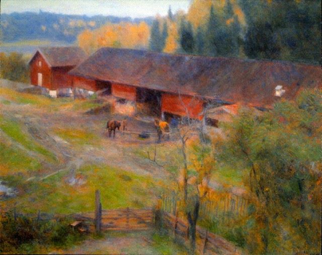 Artist: Erik Theodor Werenskiold - Title: Autumn - Medium: Fine Art Reproduction Giclee on Canvas - Image Size: Approximately 15.75 inches x 20 inches - Unframed on Unstretched Canvas - Biography: Erik Theodor Werenskiold was a Norwegian painter and illustrator. He is especially known for his drawings for the Asbjørnsen and Moe collection of Norske Folkeeventyr, and his illustrations for the Norwegian edition of the Snorri Sturlason Heimskringla.