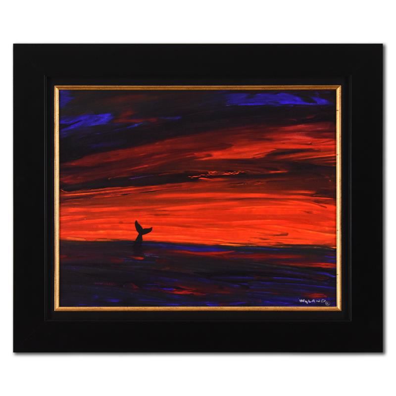 "Whale Tail" is an original painting on canvas by Wyland, hand signed by the artist. This piece comes framed. Includes Letter of Authenticity. Measures approx. 31.5" x 26.5" (framed), 23.5" x 18.5" (image).
