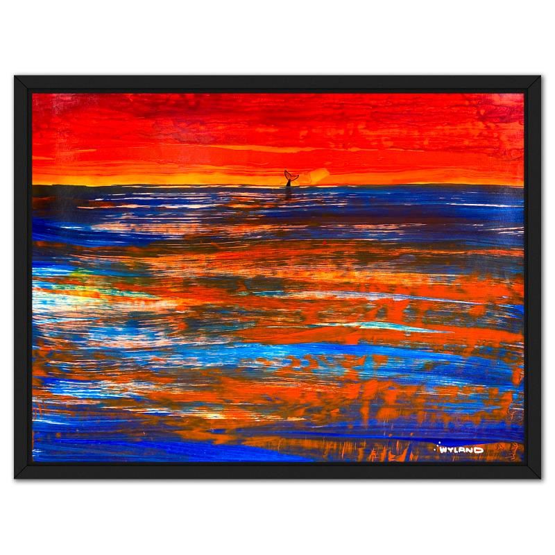 "Whale Tail"is an original acrylic painting on canvas by Wyland, hand signed by the artist. This piece comes custom framed. Includes Letter of Authenticity. Measures approx. 36" x 46" (frame), 33" x 43" (image).