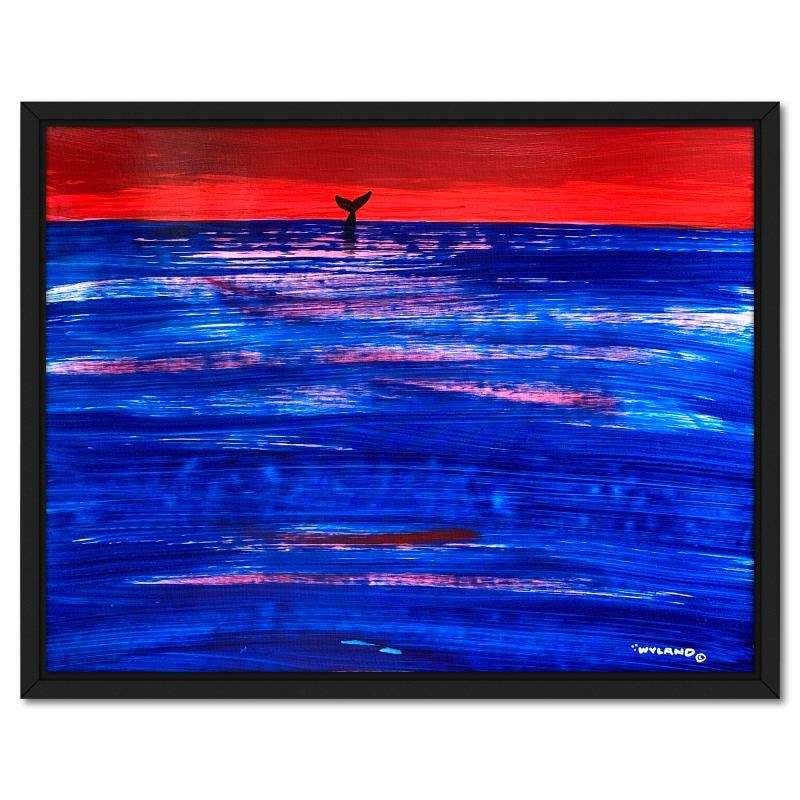 "Whale Tail"is an original acrylic painting on canvas by Wyland, hand signed by the artist. This piece comes custom framed. Includes Letter of Authenticity. Measures approx. 36" x 46" (frame), 33" x 43" (image). This item requires special handling and may have a longer than usual turnaround.