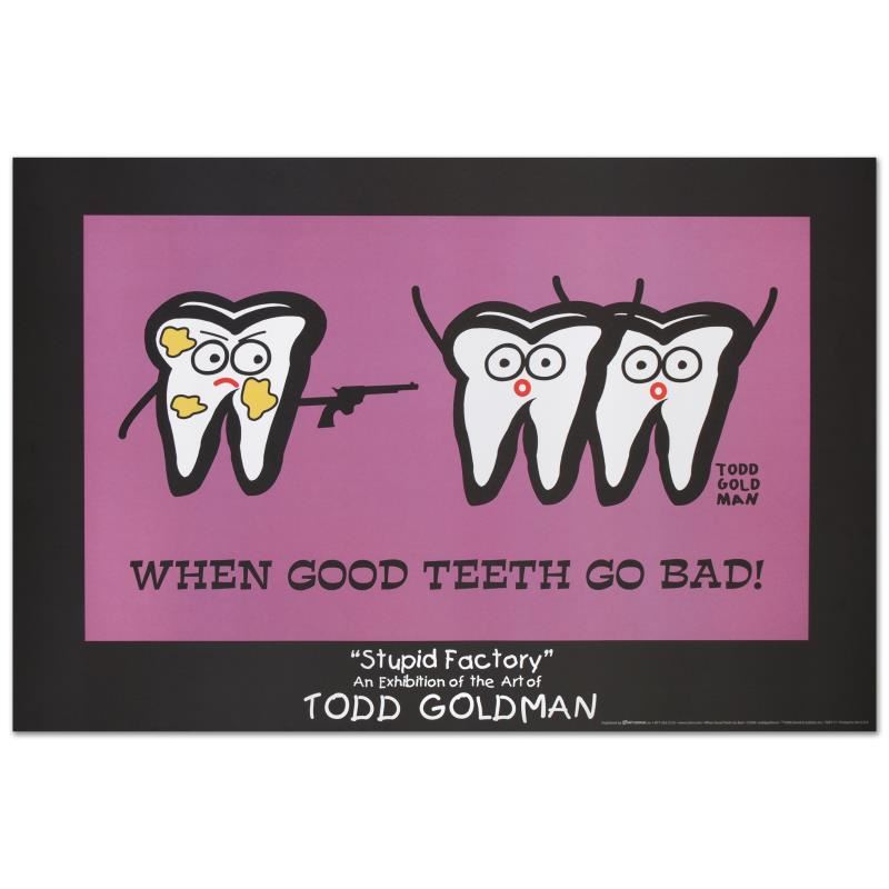 "When Good Teeth Go Bad" is a Collectible Lithograph by Todd Goldman! Measures approx. 36" x 24" (poster).