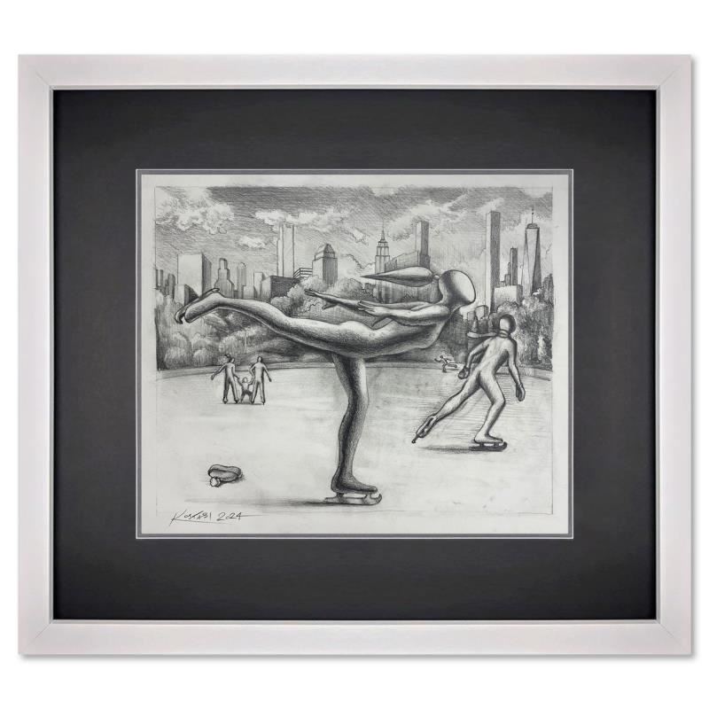 "While They Aspire - New York" is an original drawing on paper by Mark Kostabi, hand signed by the artist. This piece comes custom framed. Includes Certificate of Authenticity. Measures approx. 16" x 18" (frame), 10" x 12" (image).
