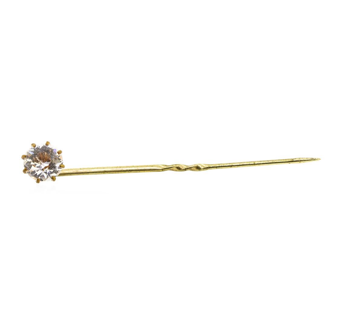 One yellow gold plated stick pin weighing 1.0 grams containing one white crystal.