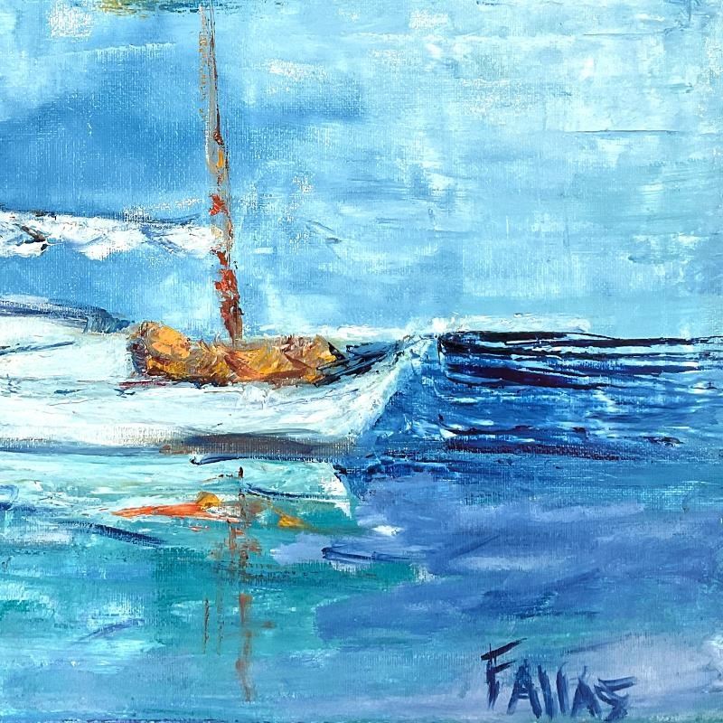 "White Sailboat" is an original oil painting on stretched canvas by Elliot Fallas, hand signed by the artist. Includes Letter of Authenticity. Measures approx. 20" x 16" (image). The sides of the canvas are painted and it can be hung as is, but a frame is definitely recommended.