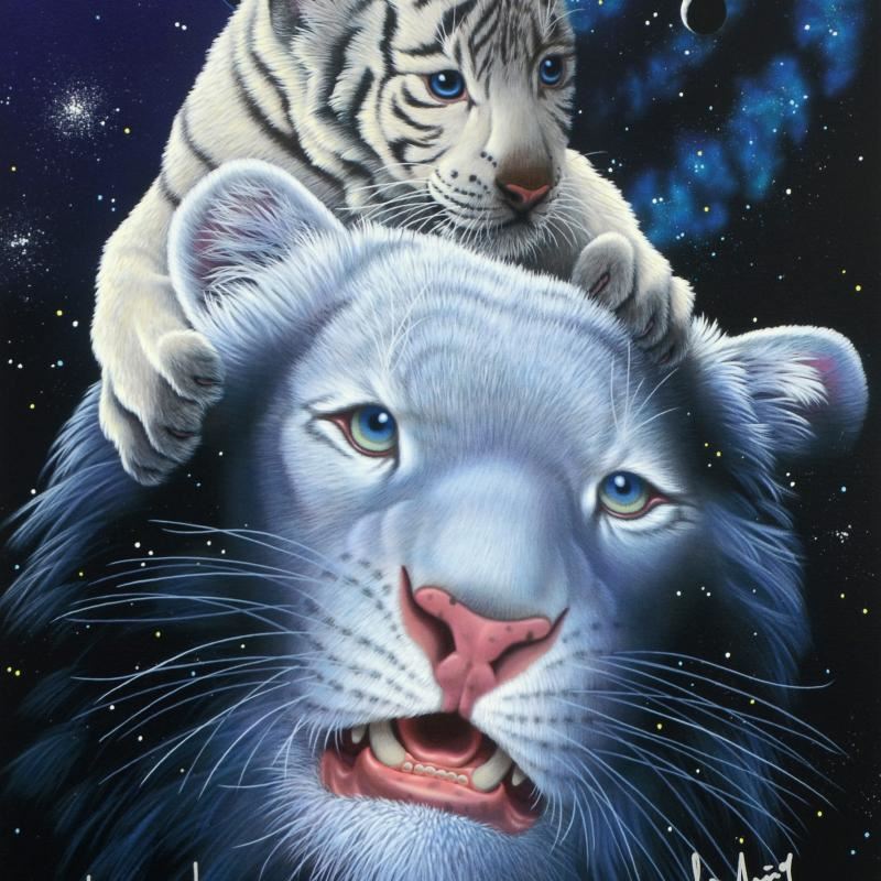 "White Tiger Magic" is a limited edition giclee on paper by William Schimmel, numbered and hand signed by the artist and the legendary magician duo, Siegfried and Roy! Includes Certificate of Authenticity! Measures approx. 25" x 35.5" (with border), 20" x 30" (image).