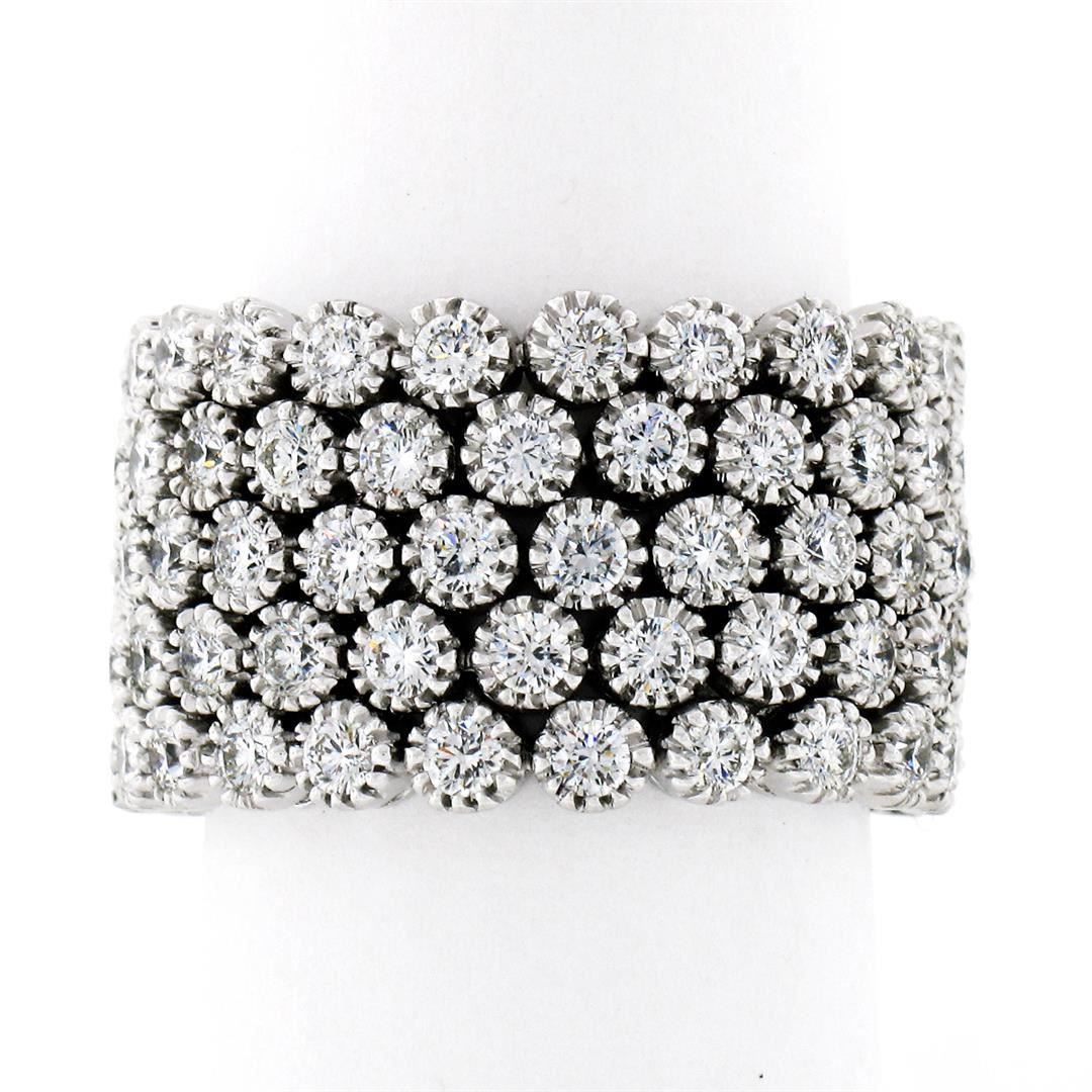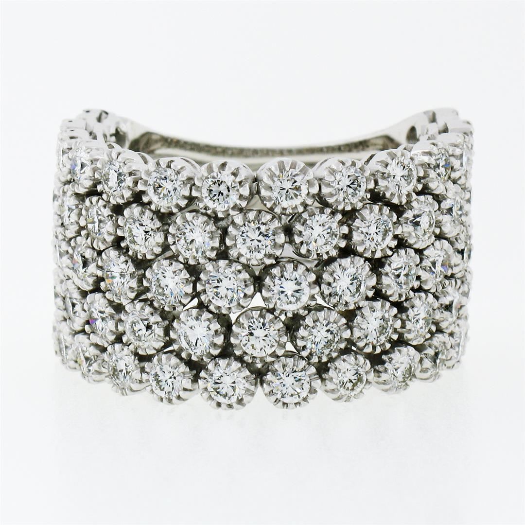 An estate solid 18k white gold wide band ring, with 68 round brilliant cut natural diamonds (F/G- VS1/VS2 ; 2.72ctw). The ring is size 7.0, weighs a total of 14.62 grams, and measures 13.50mm wide.