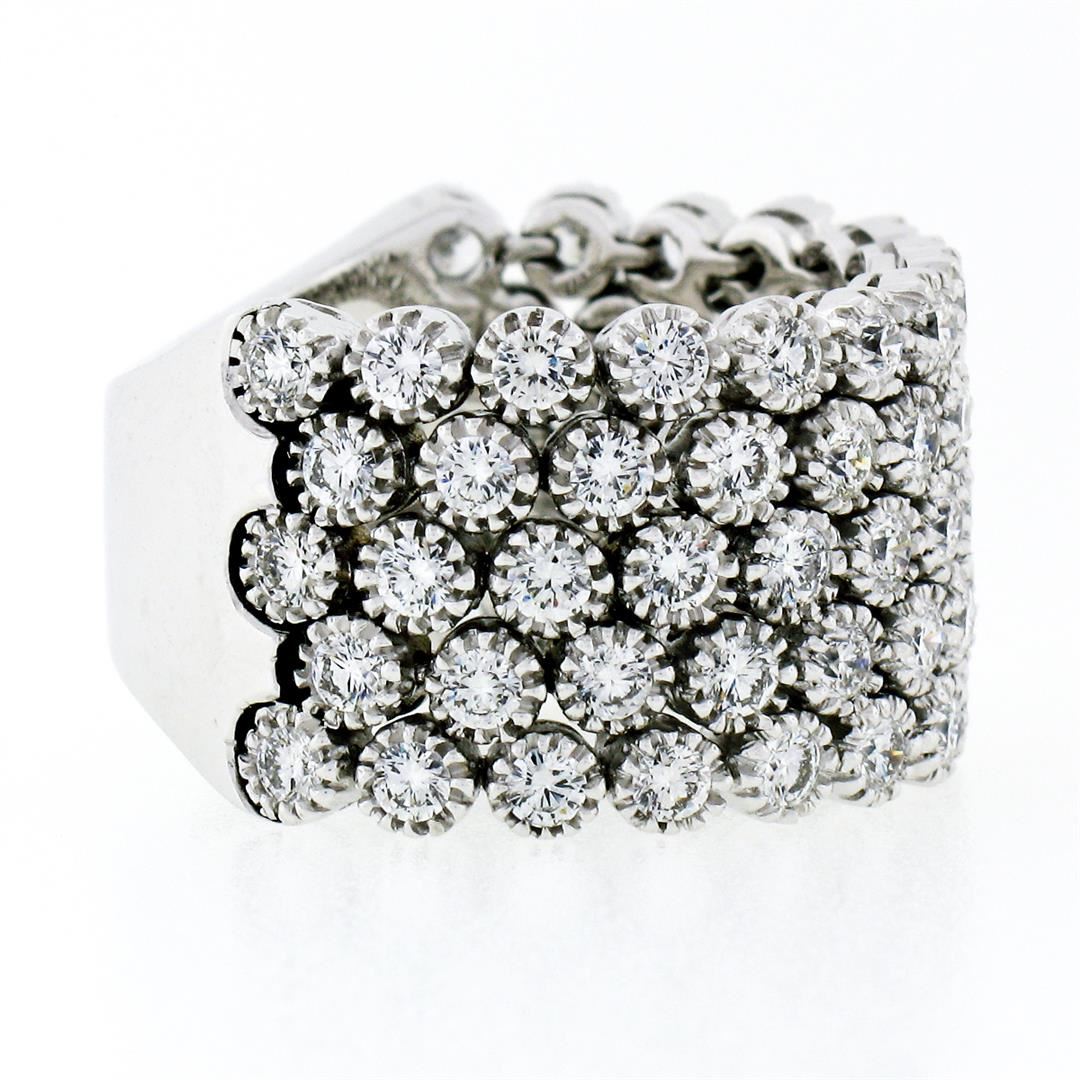 An estate solid 18k white gold wide band ring, with 68 round brilliant cut natural diamonds (F/G- VS1/VS2 ; 2.72ctw). The ring is size 7.0, weighs a total of 14.62 grams, and measures 13.50mm wide.