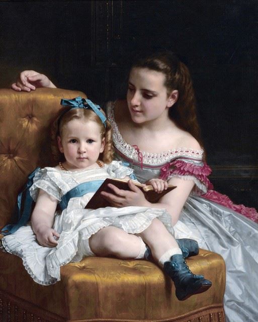 Artist: William Bouguereau - Title: Portrait of Eva and Frances Johnston - Medium: Fine Art Reproduction Giclee on Canvas - Image Size: Approximately 32 inches x 25.5 inches - Unframed on Unstretched Canvas - Biography: William Bouguereau is unquestionably one of history's greatest artistic geniuses. Since 1960, his values in the market place have literally exploded, doubling on average every 3.5 years. From works selling for and average $500 to $1500 in 1960, they have accelerated to where in the last three years alone his auction records have been repeatedly broken another 4 times. In 1998 The Heart's Awakening sold for $1,410,000 at Christie's New York.
