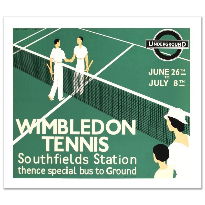 "Wimbledon Tennis" is a hand pulled lithograph on paper by the RE Society, image originally by A.E. Marty. Includes Certificate of Authenticity! Measures approx. 19" x 16" (with border), 17" x 14" (image).