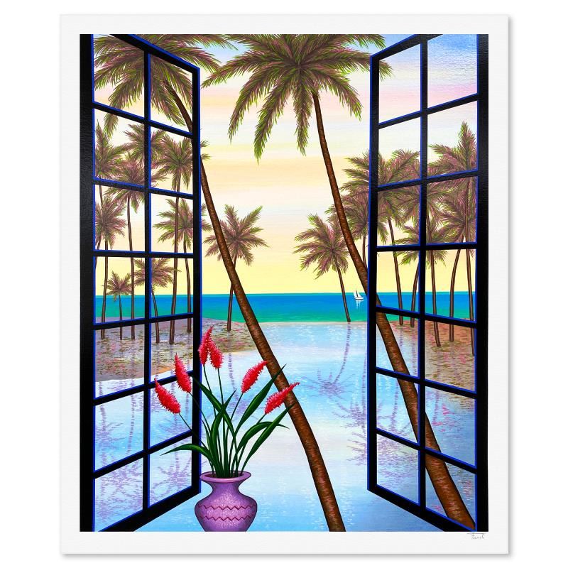 "Window on Lagoon" is a limited edition serigraph on paper by Fanch AP numbered and hand signed by the artist. Includes Letter of Authenticity. Measures approx. 31" x 26" (border) 28.5" x 23" (image). This proof came from Fanch Ledans personal collection. It may have some slight imperfections in the image and border but its overall condition was inspected and approved by him.